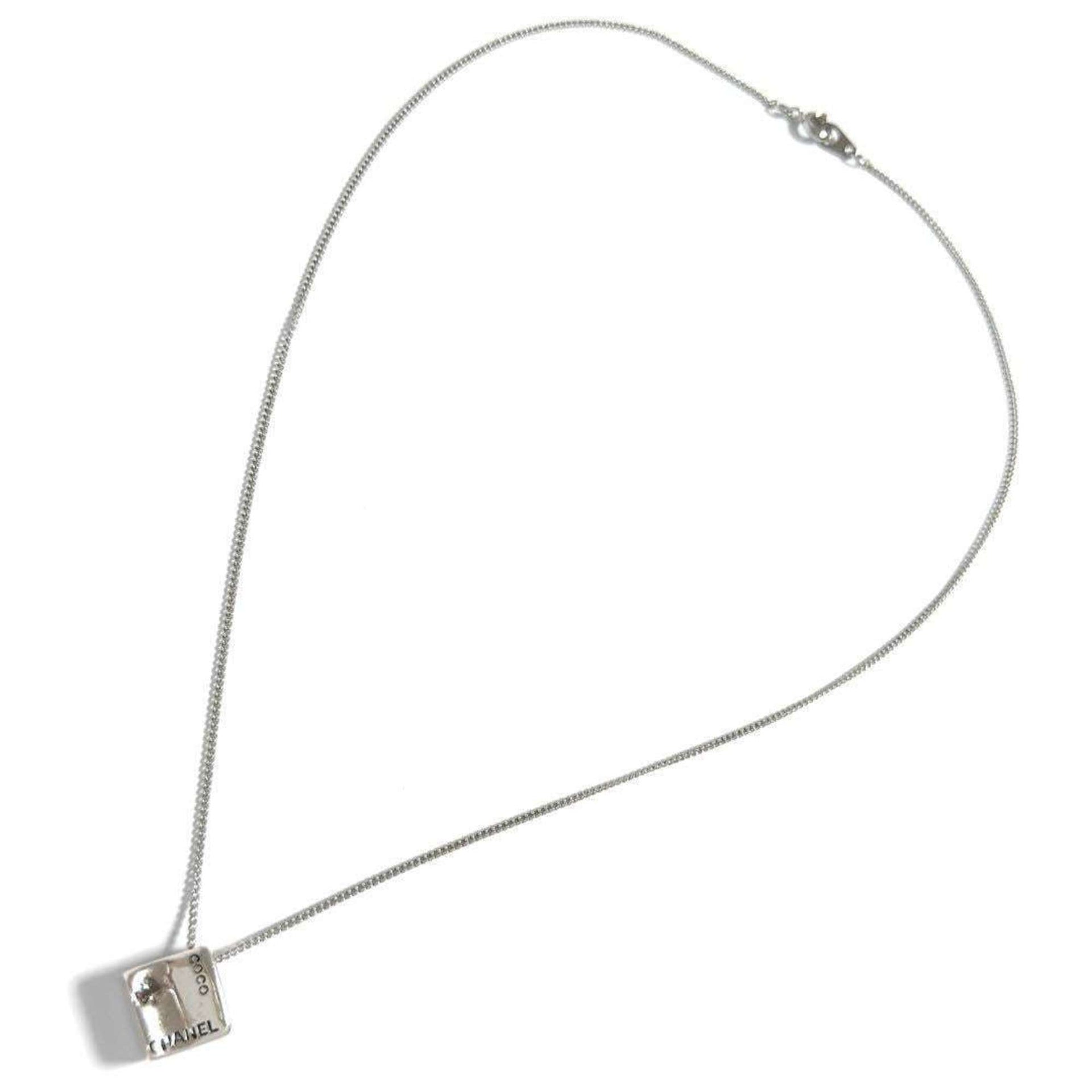 Chanel Pendant Necklace Silver Coco Camellia Reversible