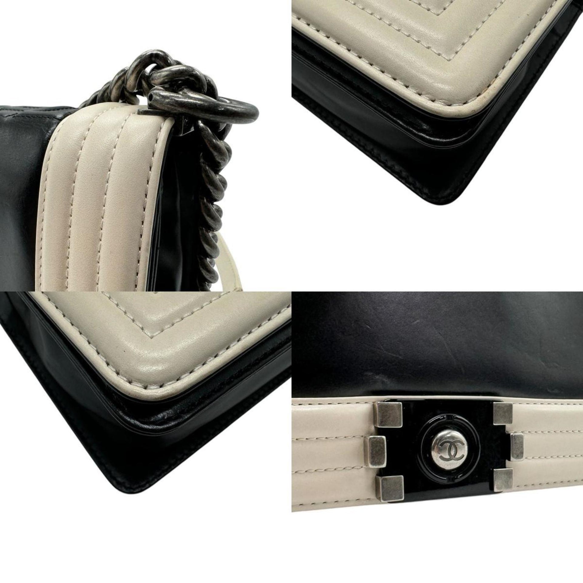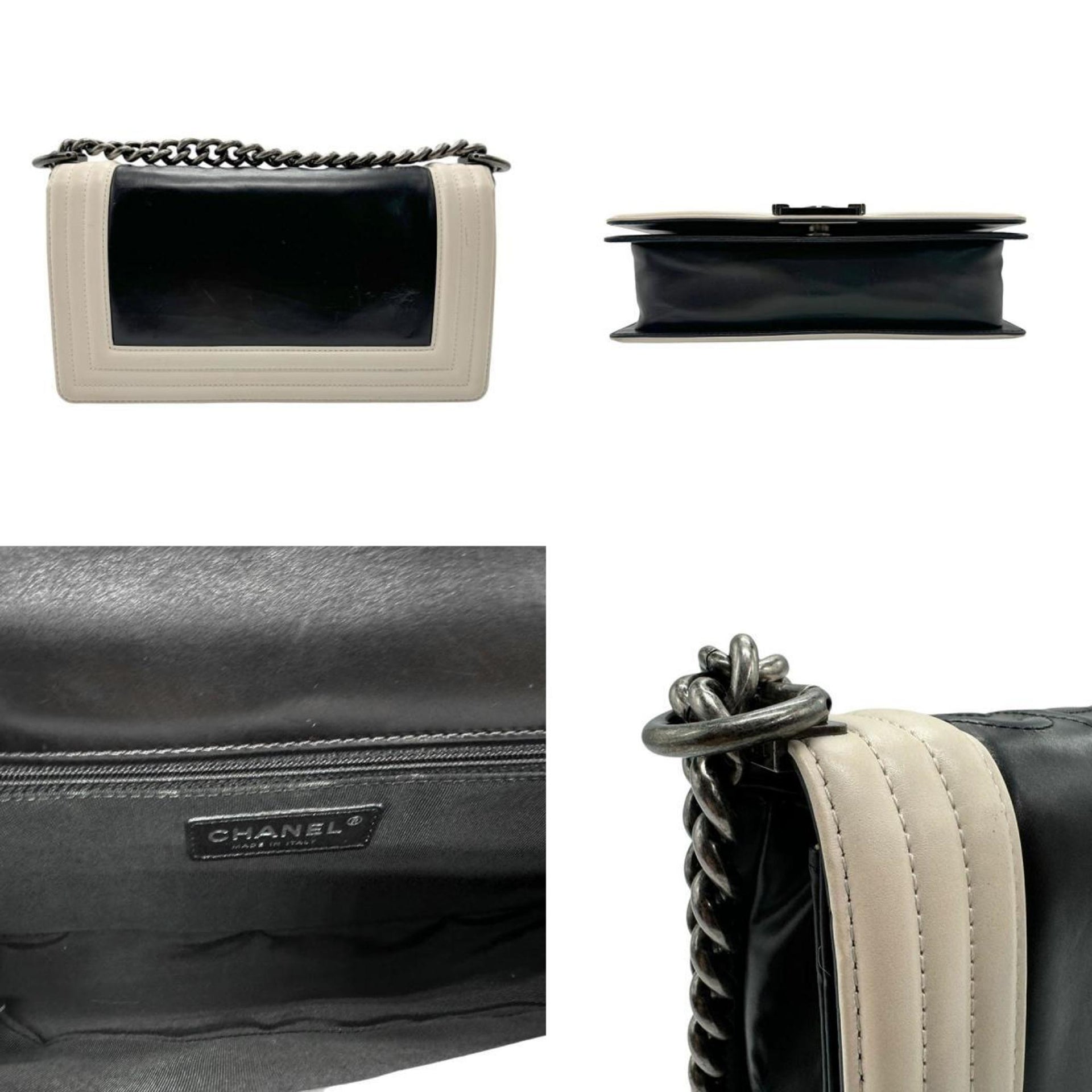 CHANEL Shoulder Bag Boy Chanel Leather Black Off-White Women\'s n0485