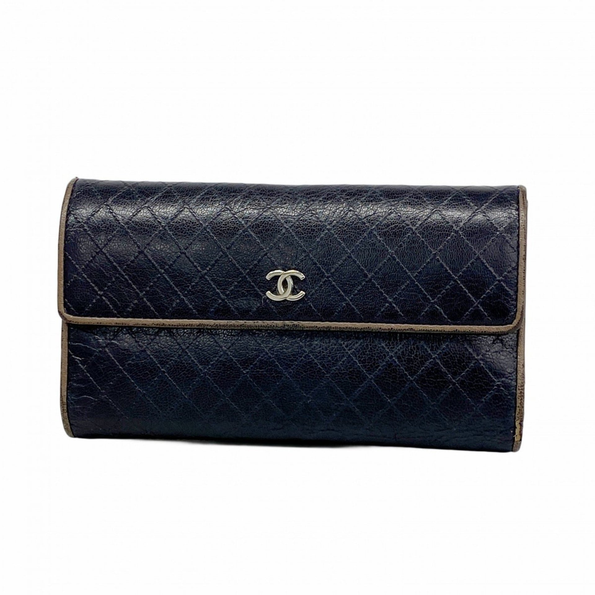 Chanel Tri-fold Long Wallet Bicolor Leather Black Brown Women\'s