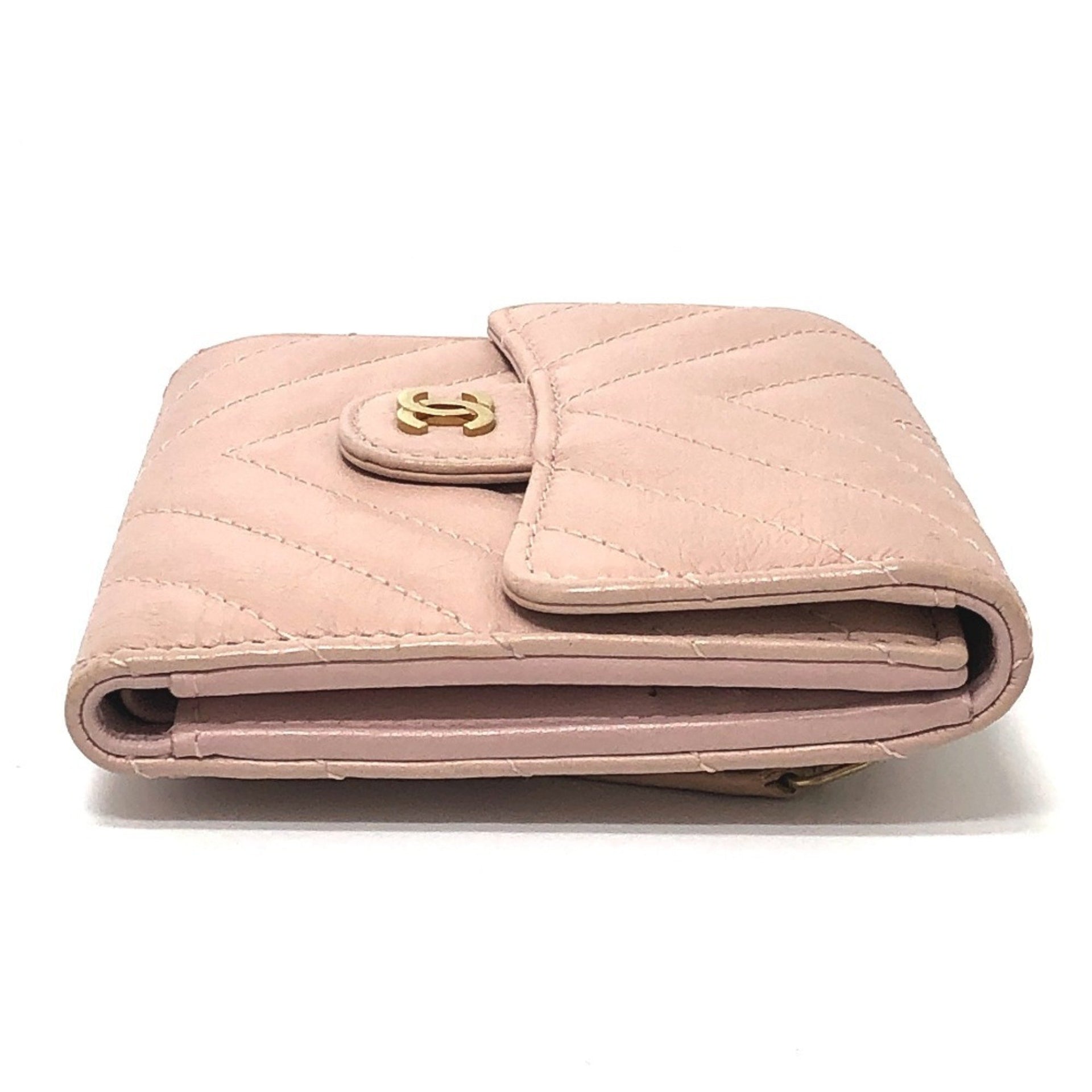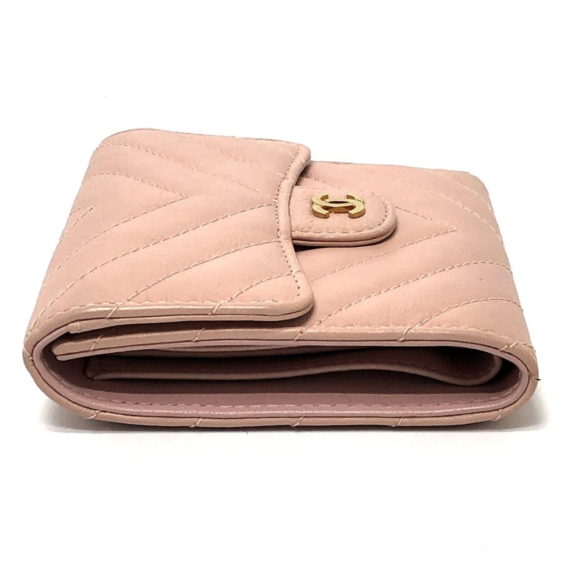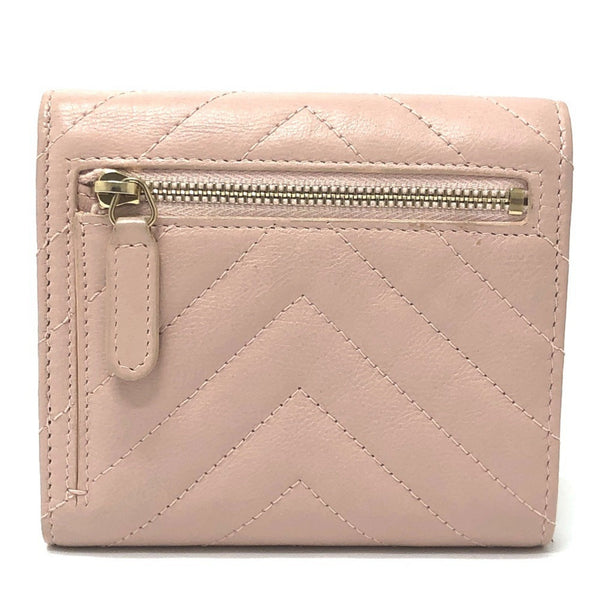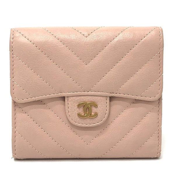 CHANEL V-stitch chevron compact wallet, tri-fold lambskin, women\'s, pink beige, beige