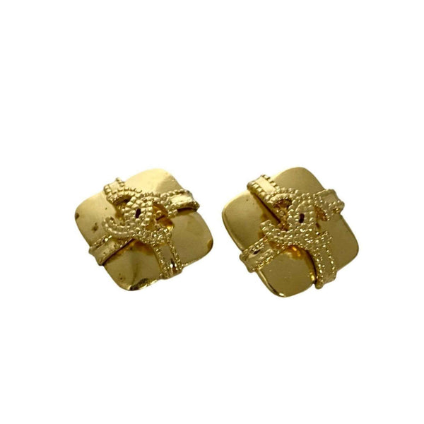 CHANEL Vintage 97A Engraved Coco Mark Motif Earrings/Ear Cuff Gold 69077