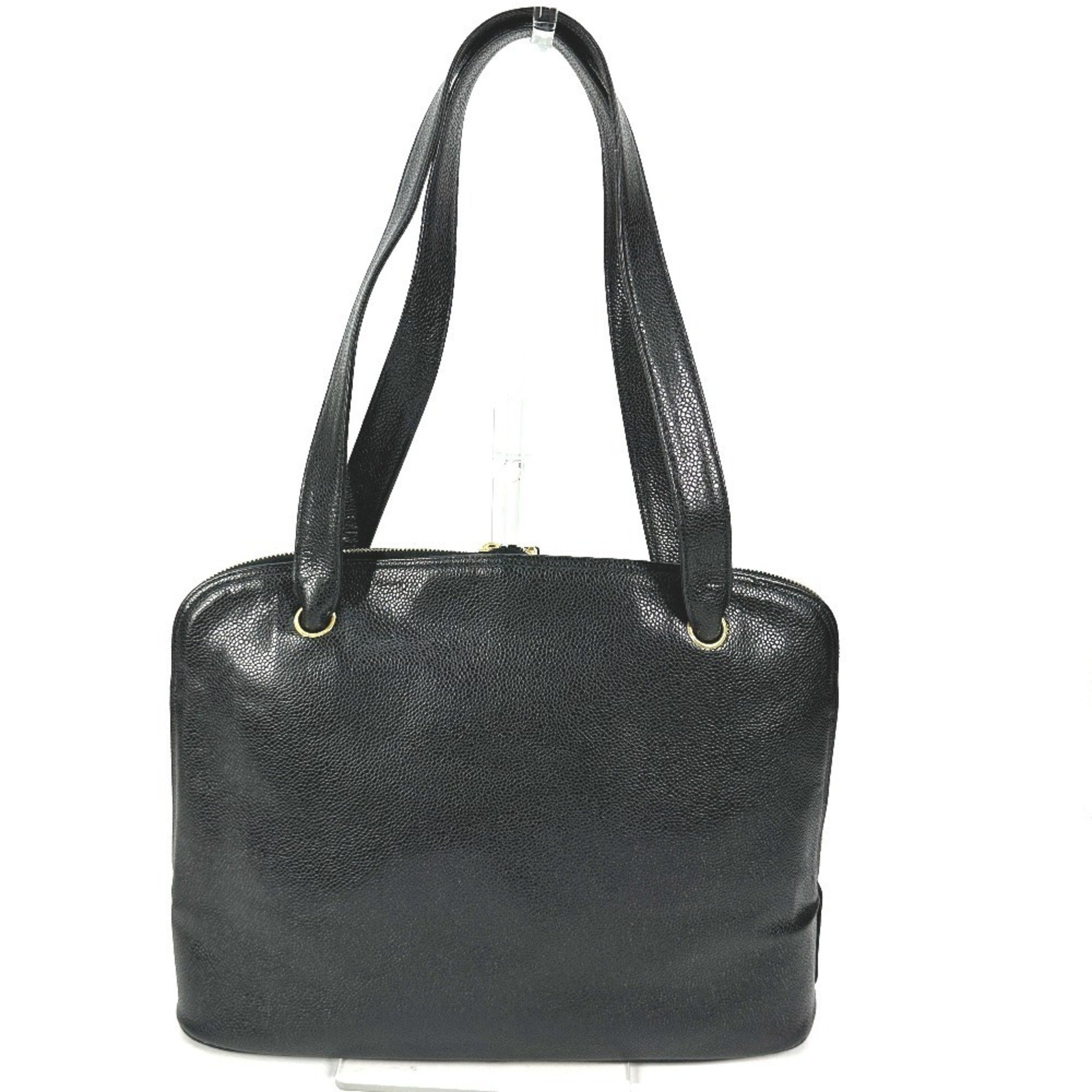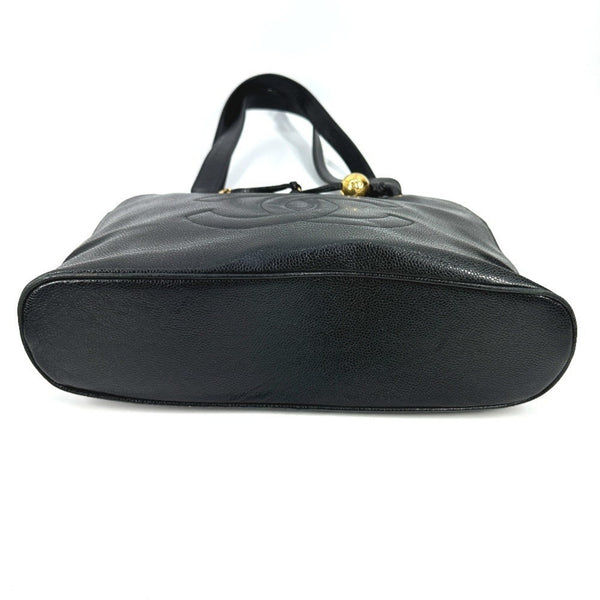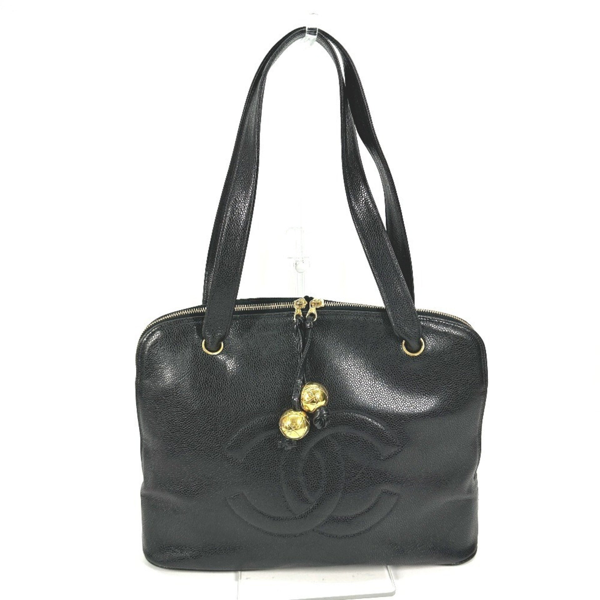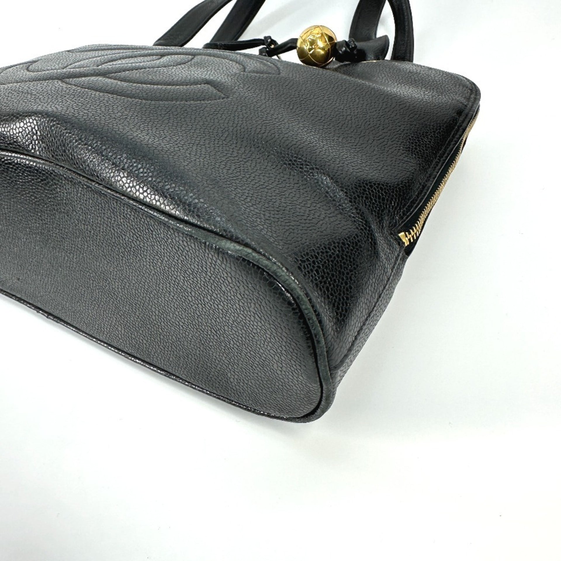 CHANEL Vintage CC Coco Mark Deka Ball Logo Shoulder Tote Bag Caviar Skin Women\'s Black