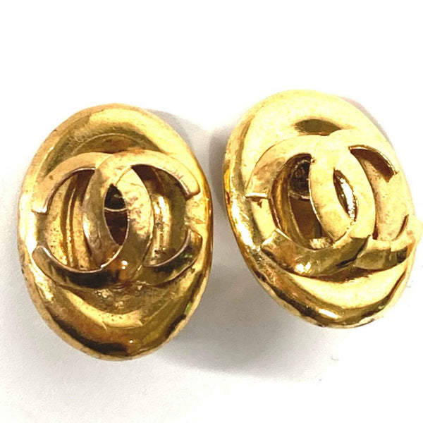 CHANEL Vintage CC Coco Mark Round Earrings in Metal, Gold, for Women