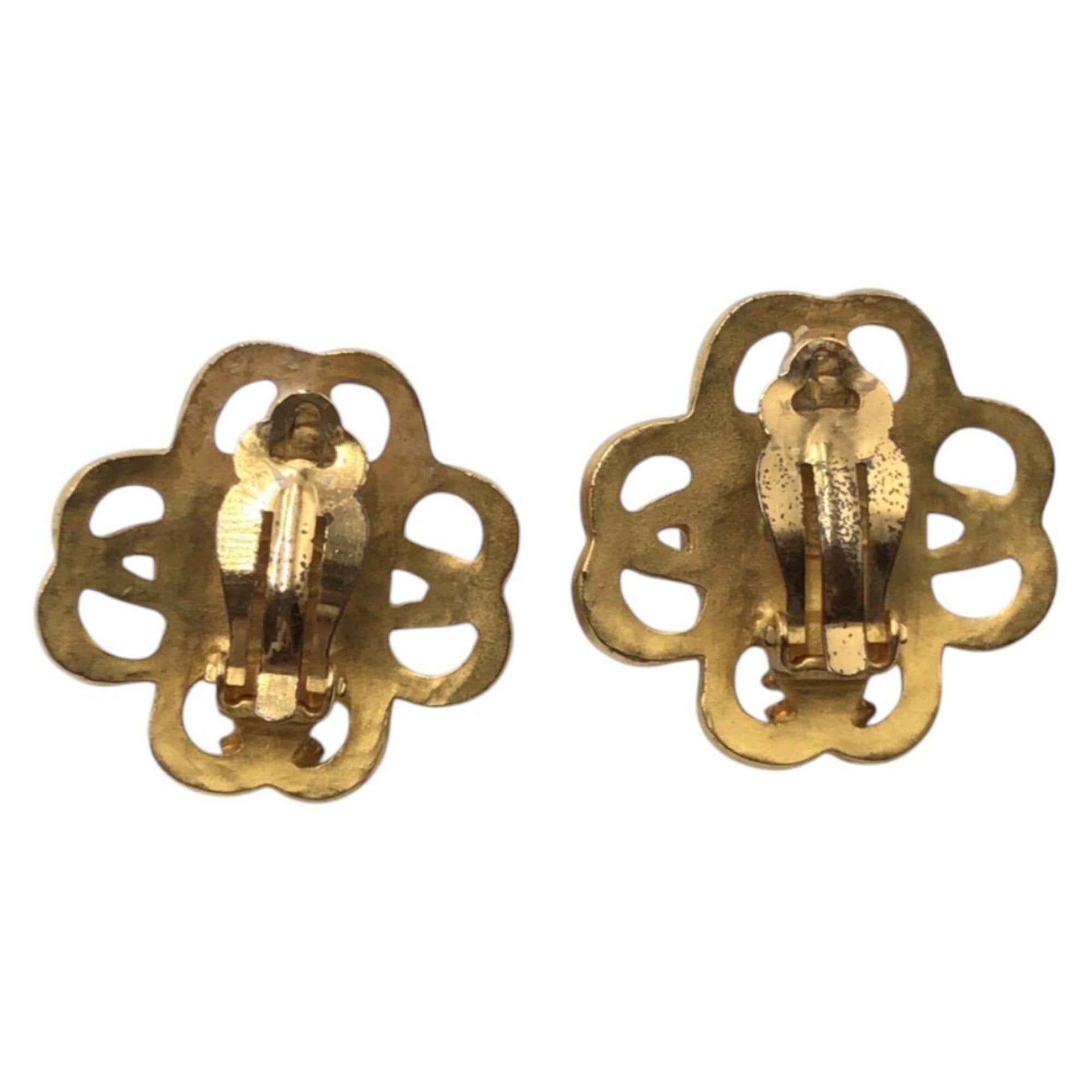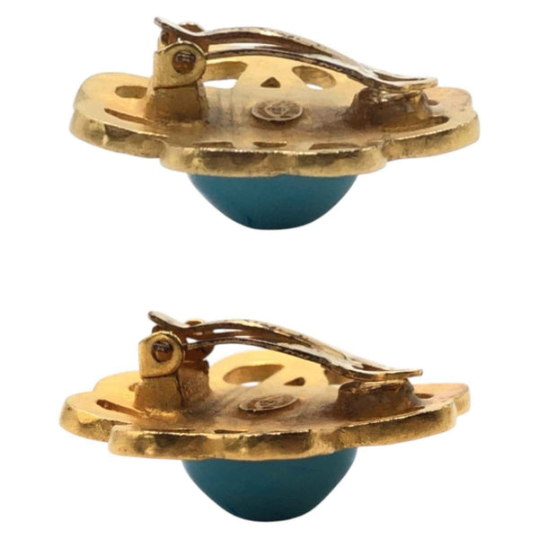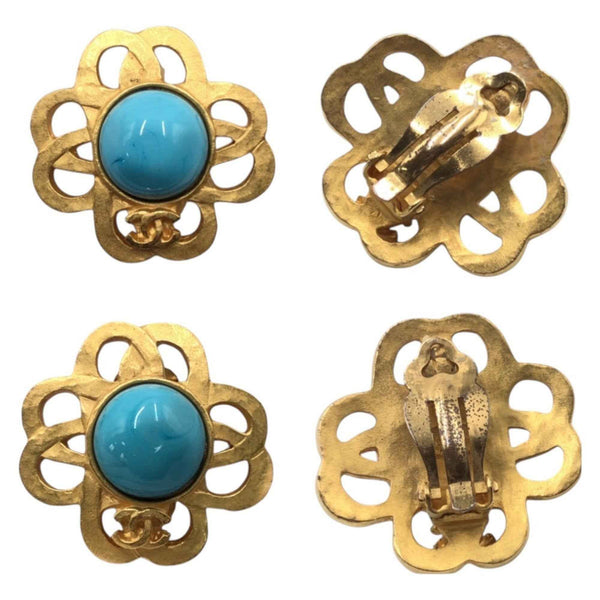 CHANEL Vintage Gripoa Coco Mark Gold Turquoise Metal 95P Earrings for Women