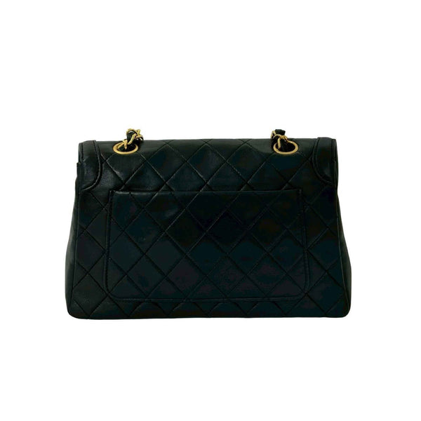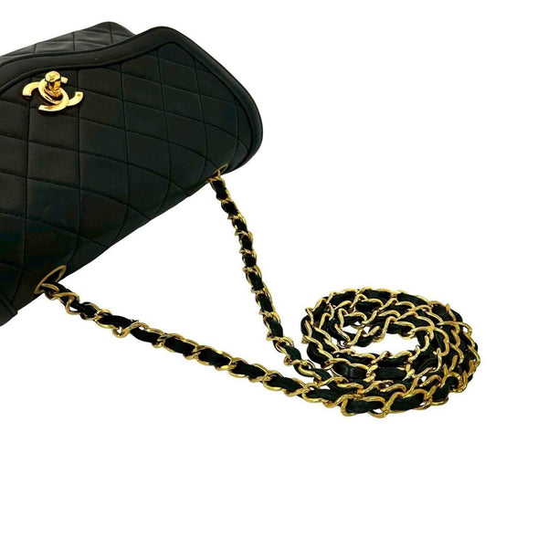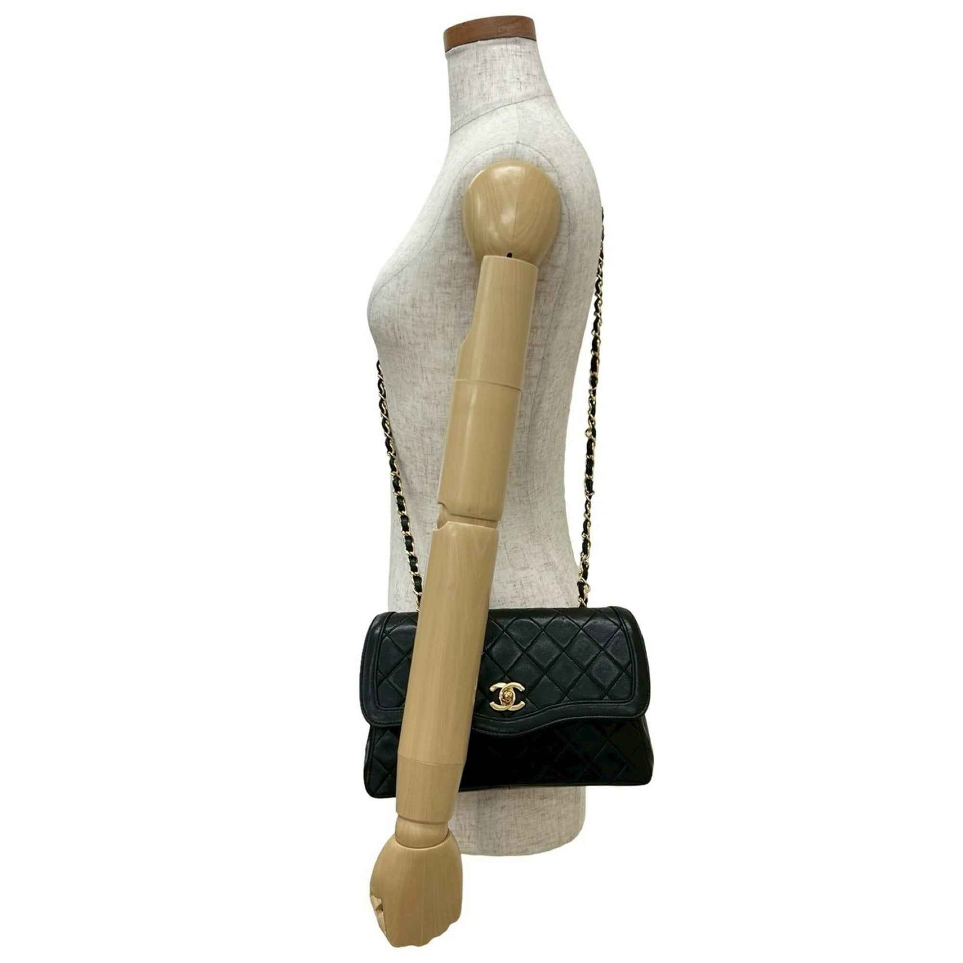 CHANEL Vintage Matelasse Coco Mark Lambskin Chain Shoulder Bag in Black f10-3