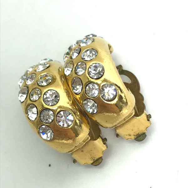 CHANEL Vintage Rhinestone Earrings, Metal, Women\'s, Gold