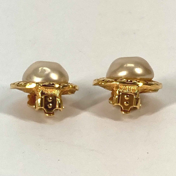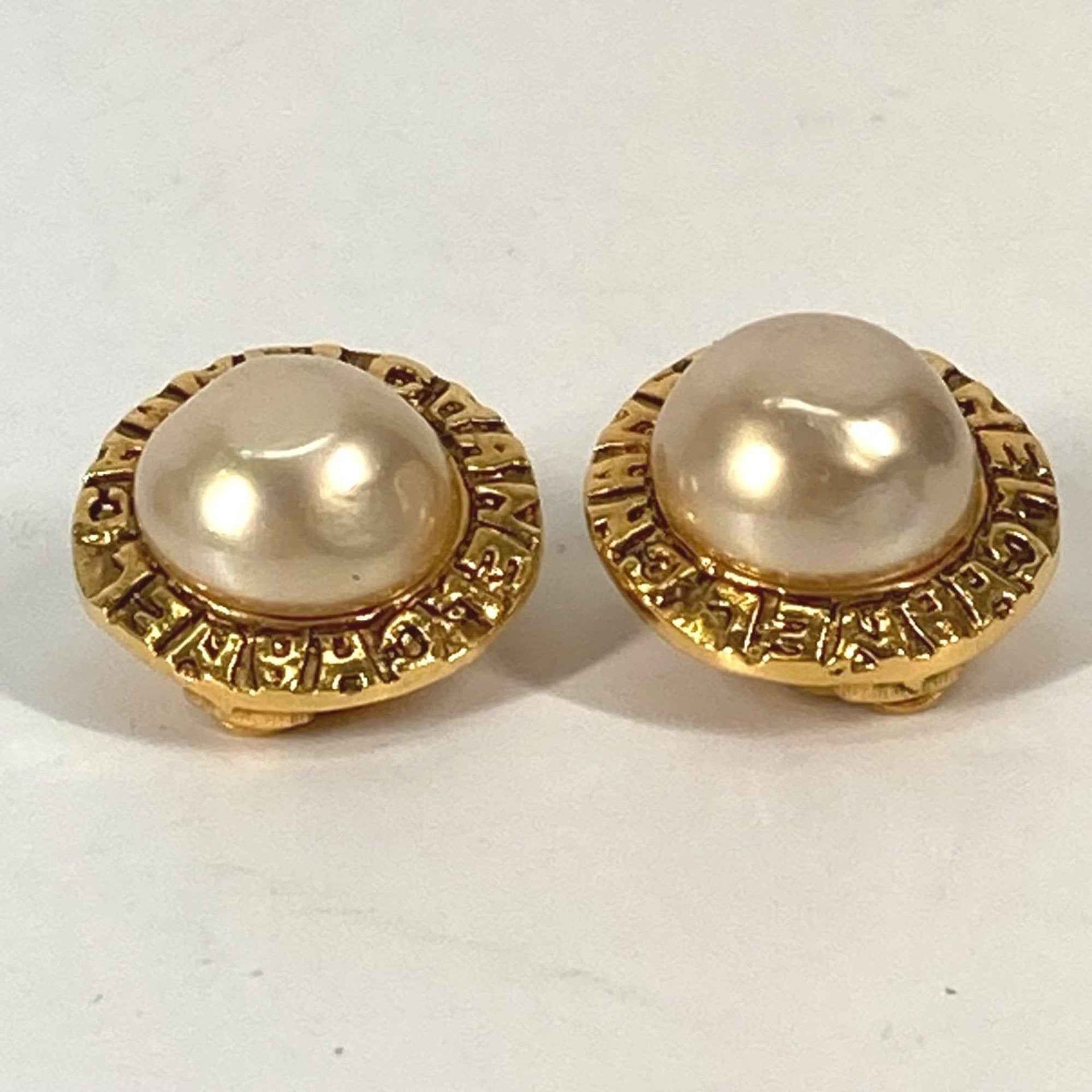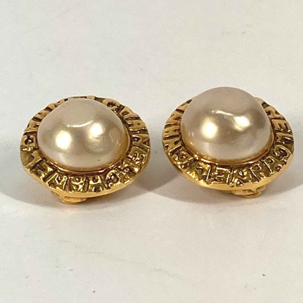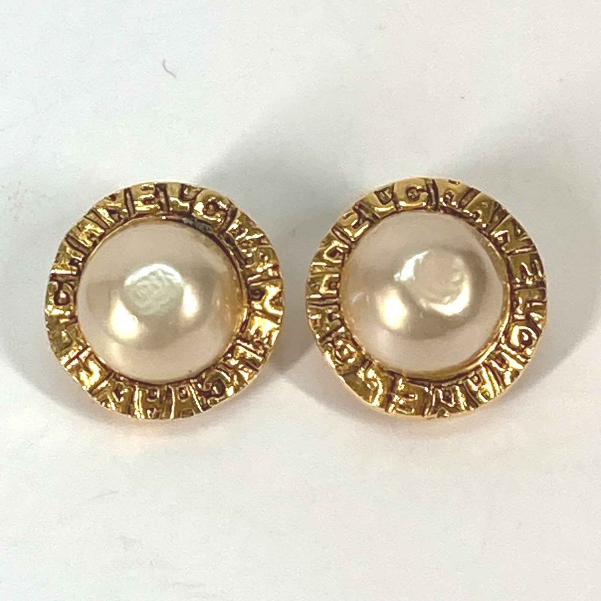 CHANEL Vintage Round Logo Faux Pearl Earrings, Metal, Women\'s, Gold