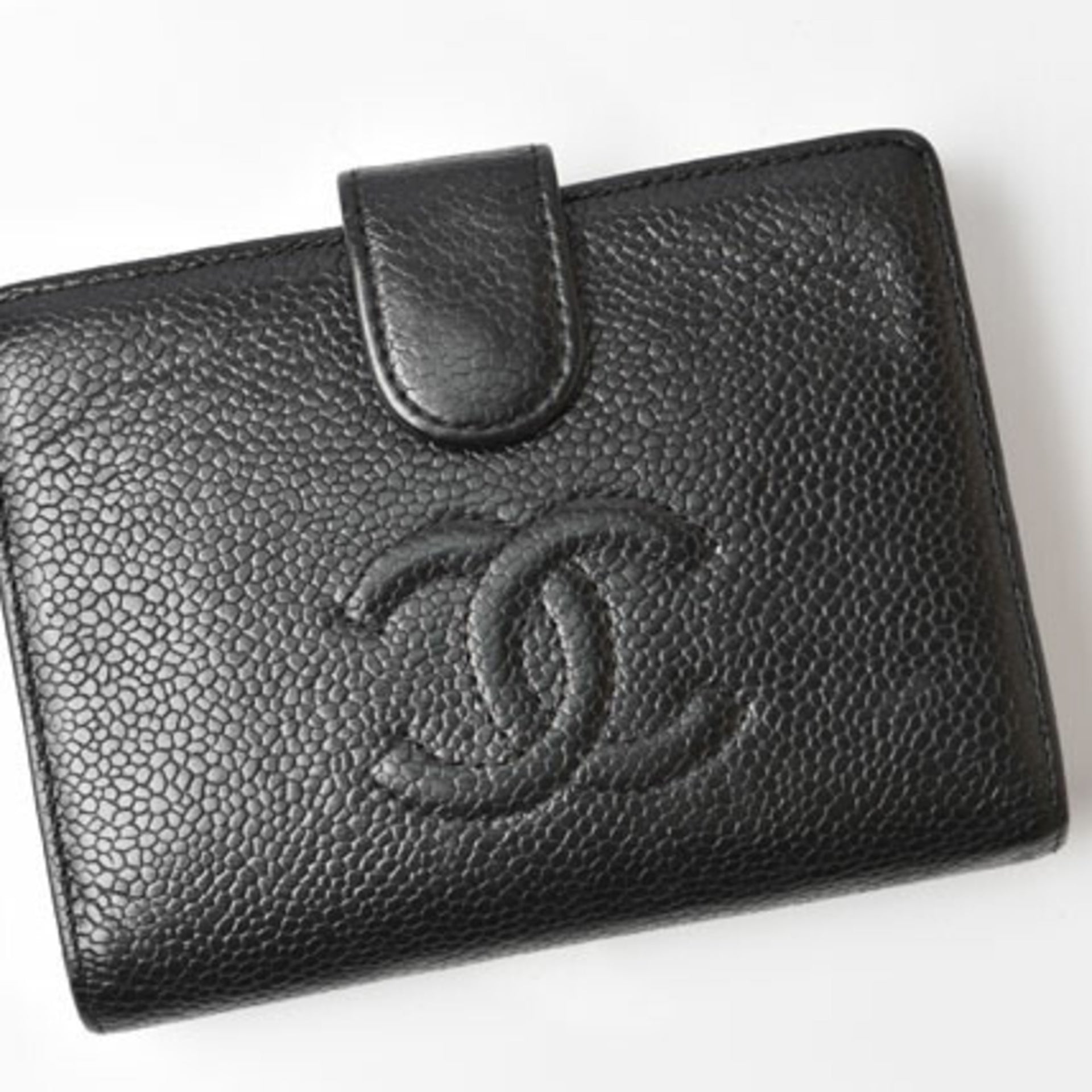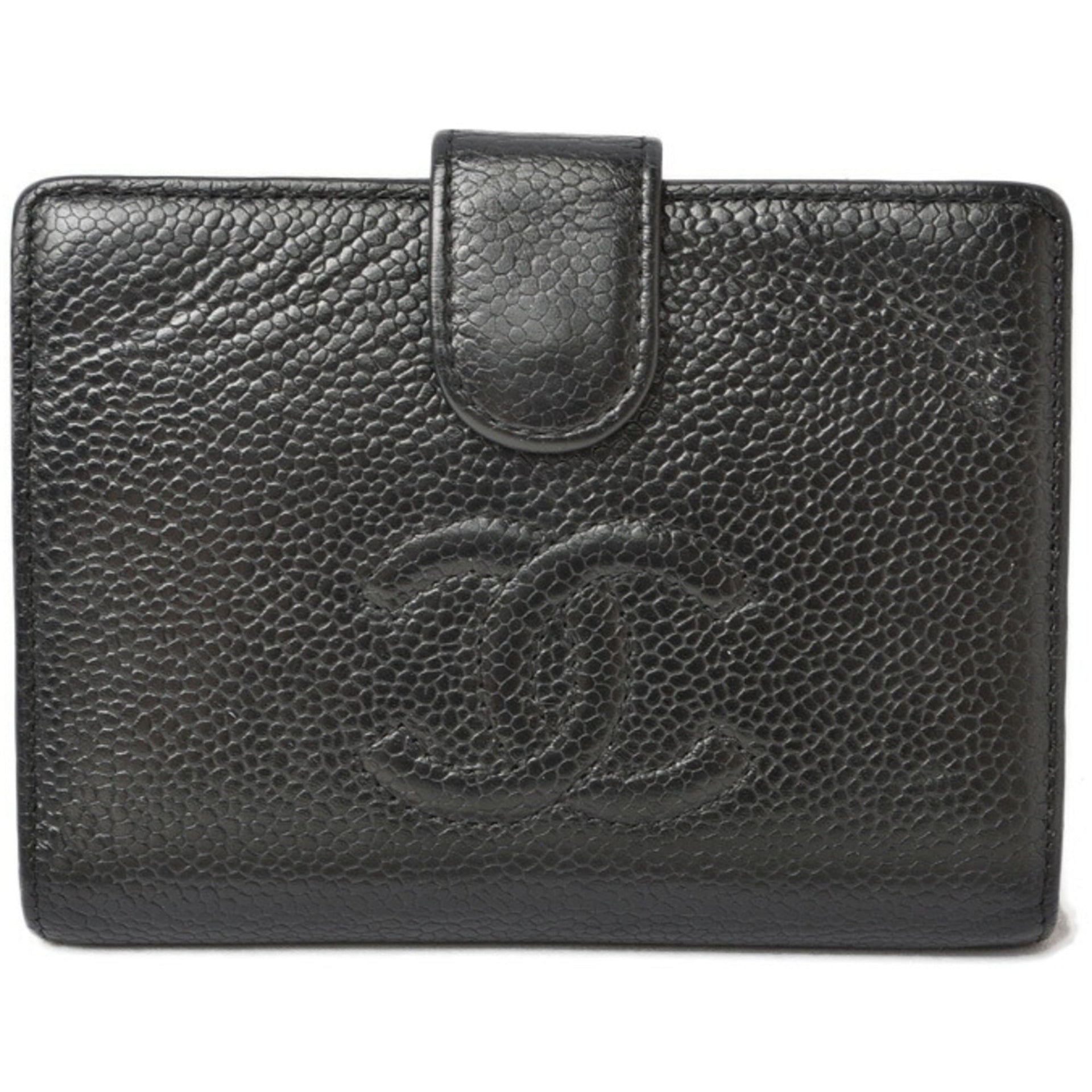 Chanel Wallet CHANEL Style Bi-Fold Caviar Skin Coco Mark Black