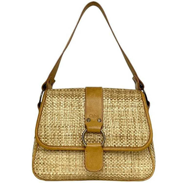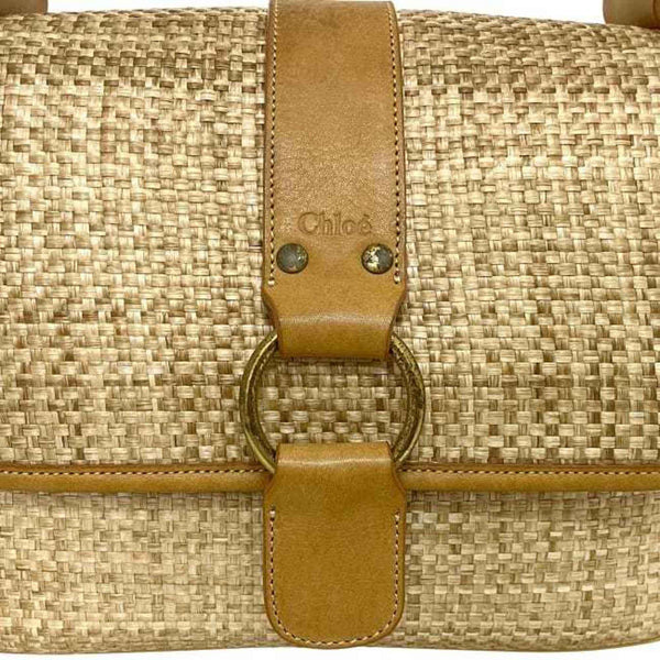 Chloé Chloe handbag ec-24122 beige straw leather bag flap women\'s
