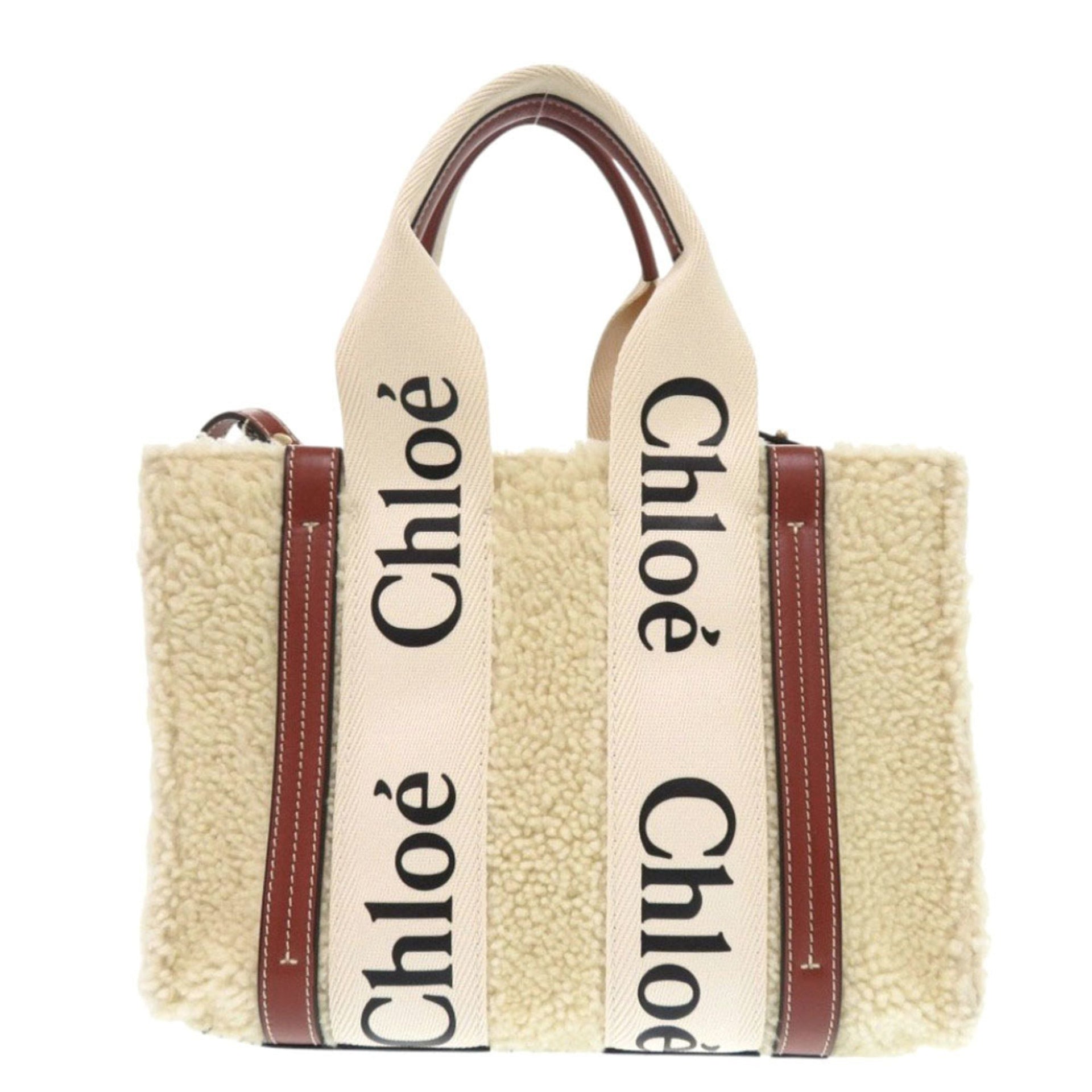 Chloé Like new Chloe WOODY Small Tote Bag Boa Leather Beige Brown 2way Handbag 1460Chloe