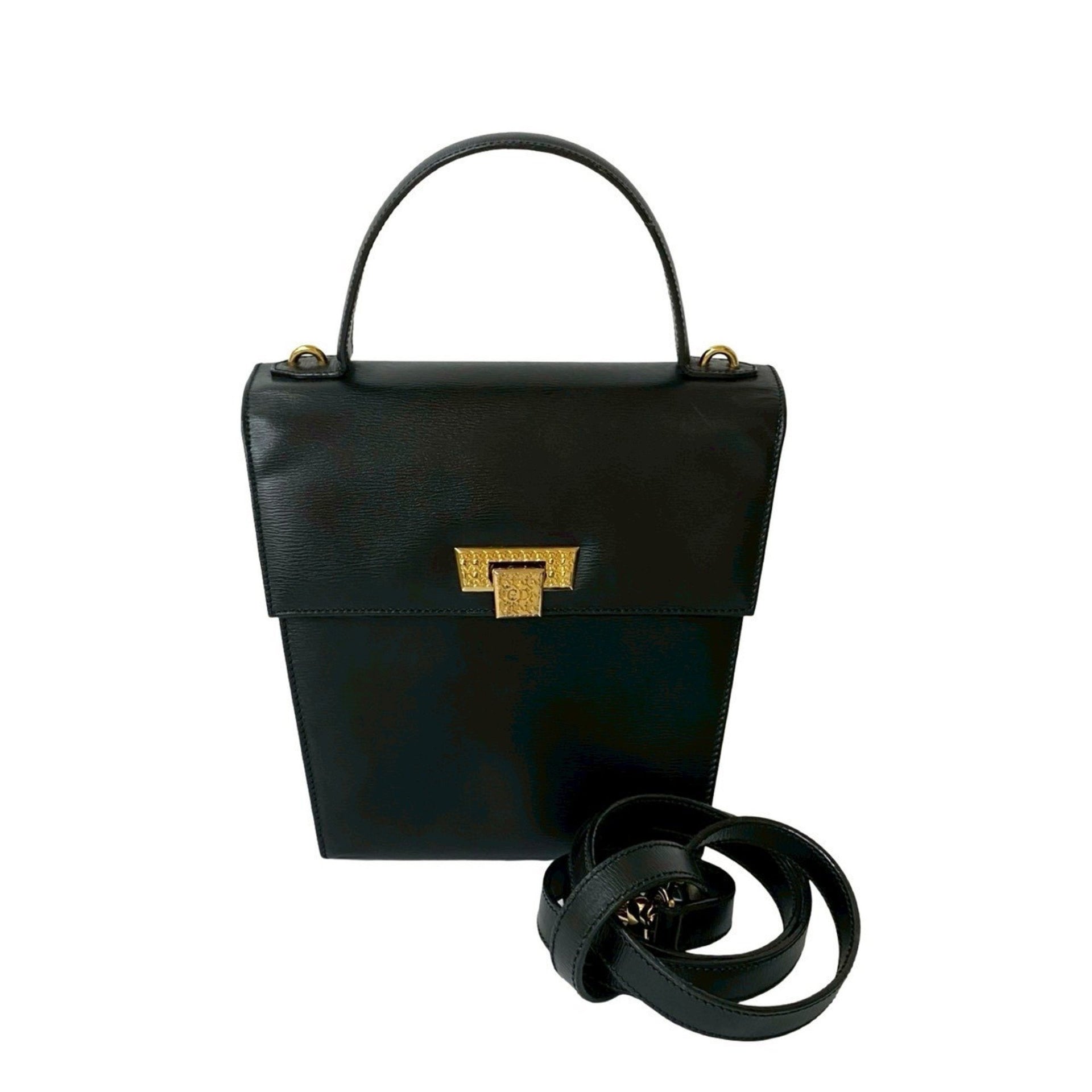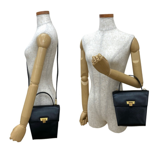 Christian Dior CD logo hardware leather genuine 2-way handbag/shoulder bag black 48645