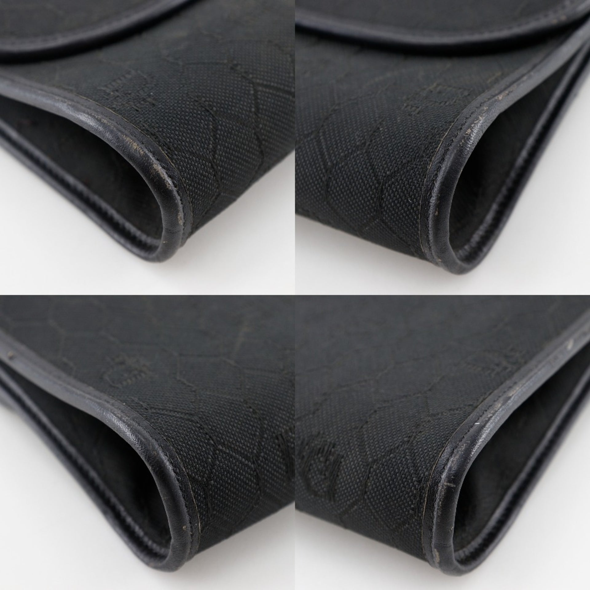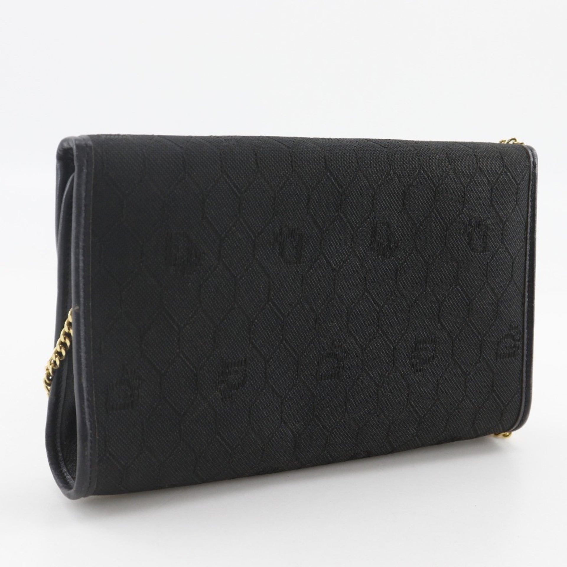 Christian Dior Chain Shoulder Bag, Honeycomb Pattern, Nylon Canvas, Black, Snap Button, Women\'s