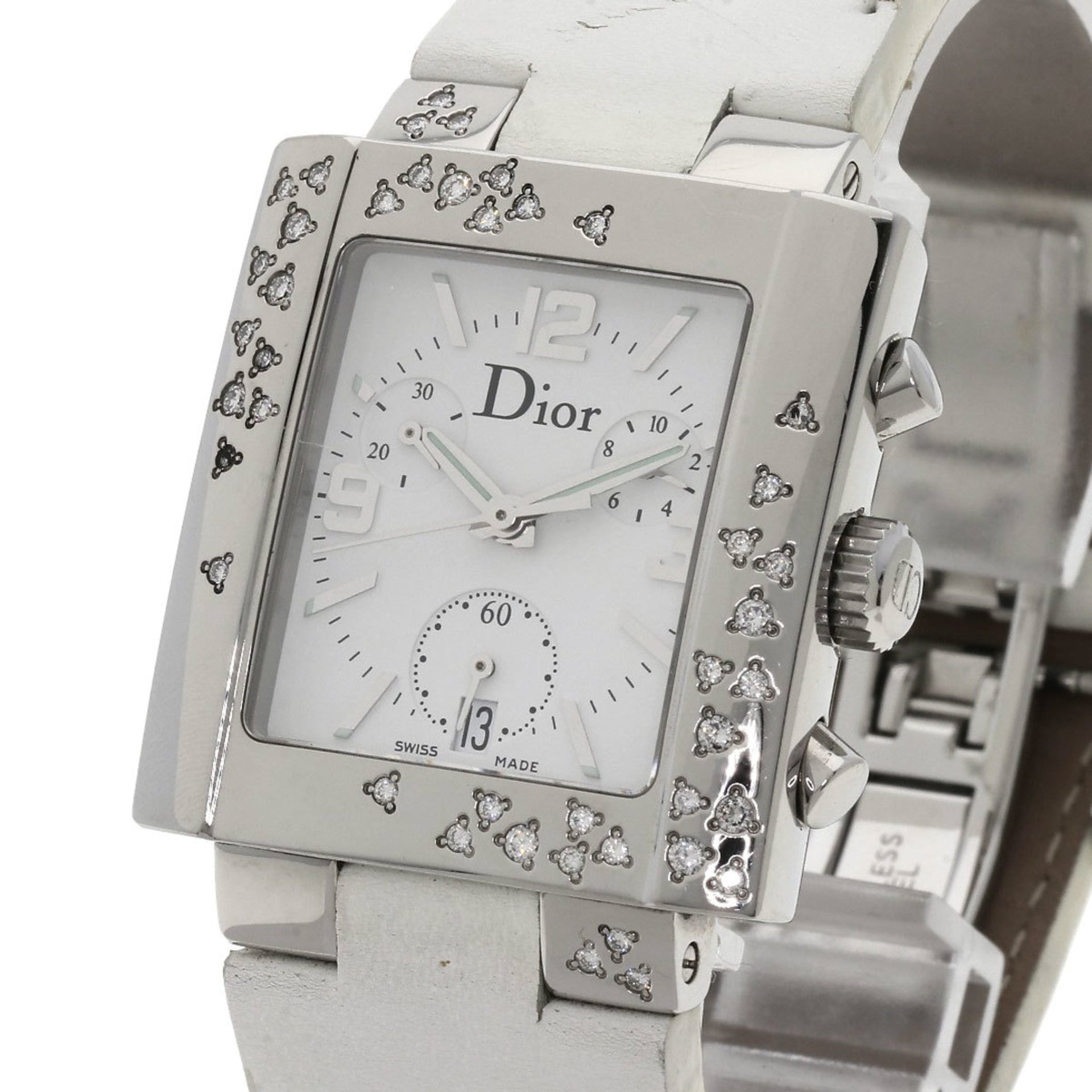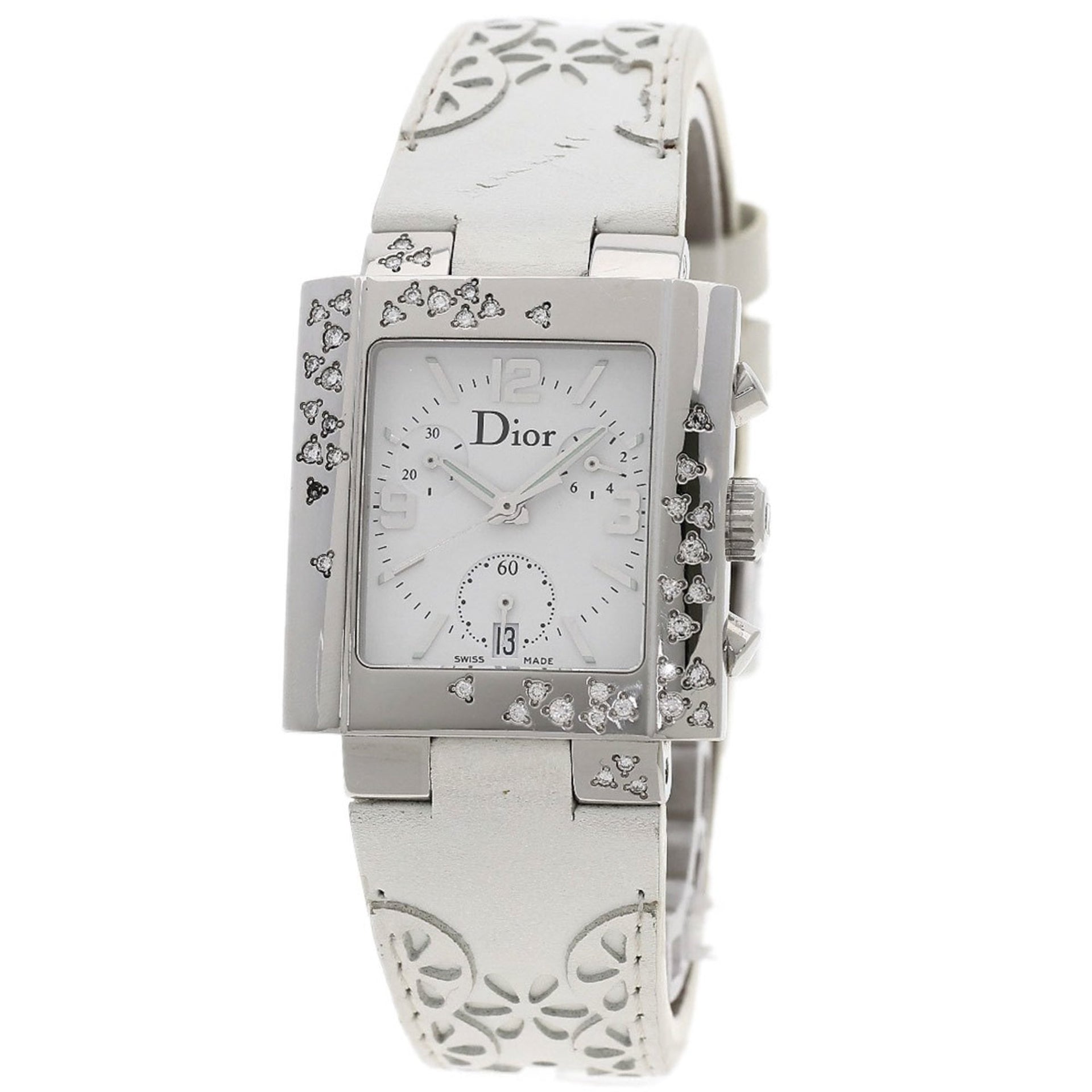 Christian Dior D81-101 Riva Diamond Bezel Watch Stainless Steel Leather Women\'s CHRISTIAN DIOR