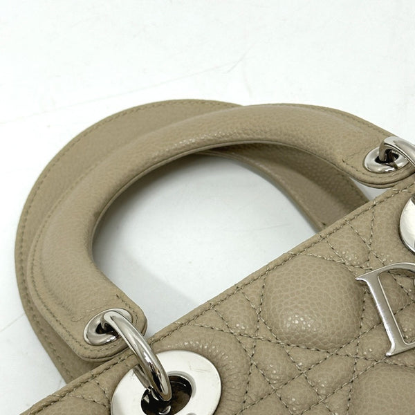 Christian Dior Dior Lady Cannage 2WAY Shoulder Bag Crossbody Handbag Leather Women\'s Beige