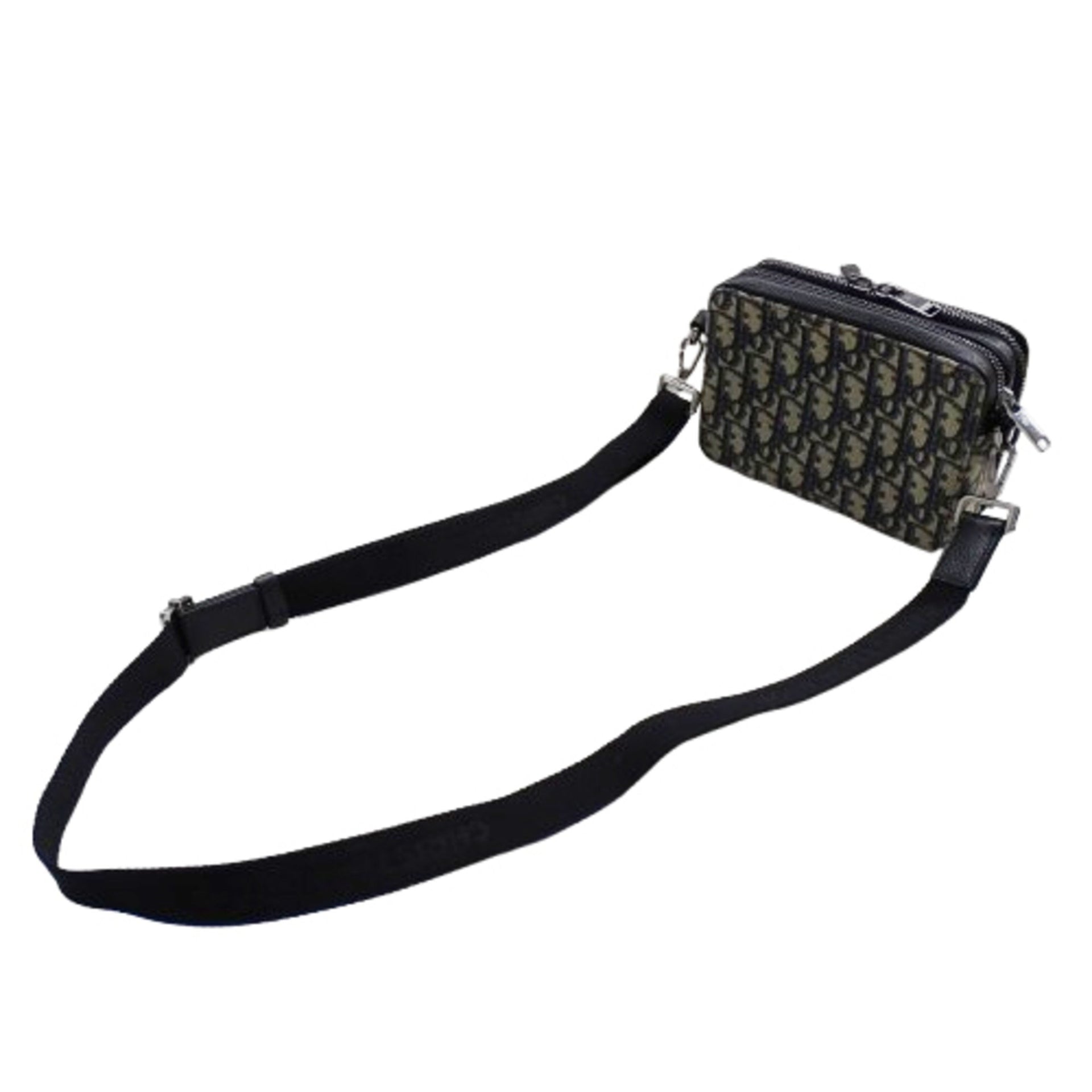 Christian Dior Dior Men\'s Oblique Jacquard Shoulder Bag with Strap and Zip Pouch, Beige Black, 2OBBC119YSE, Crossbody