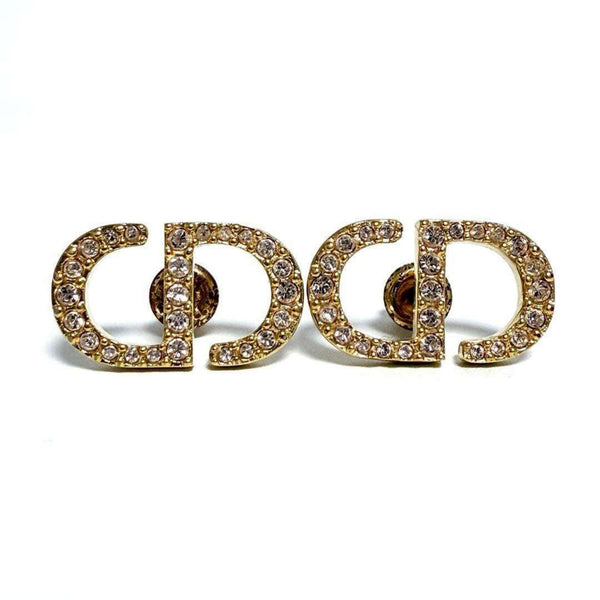 Christian Dior Dior Petit CD Stud Earrings with Pink Rhinestones