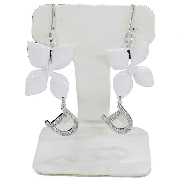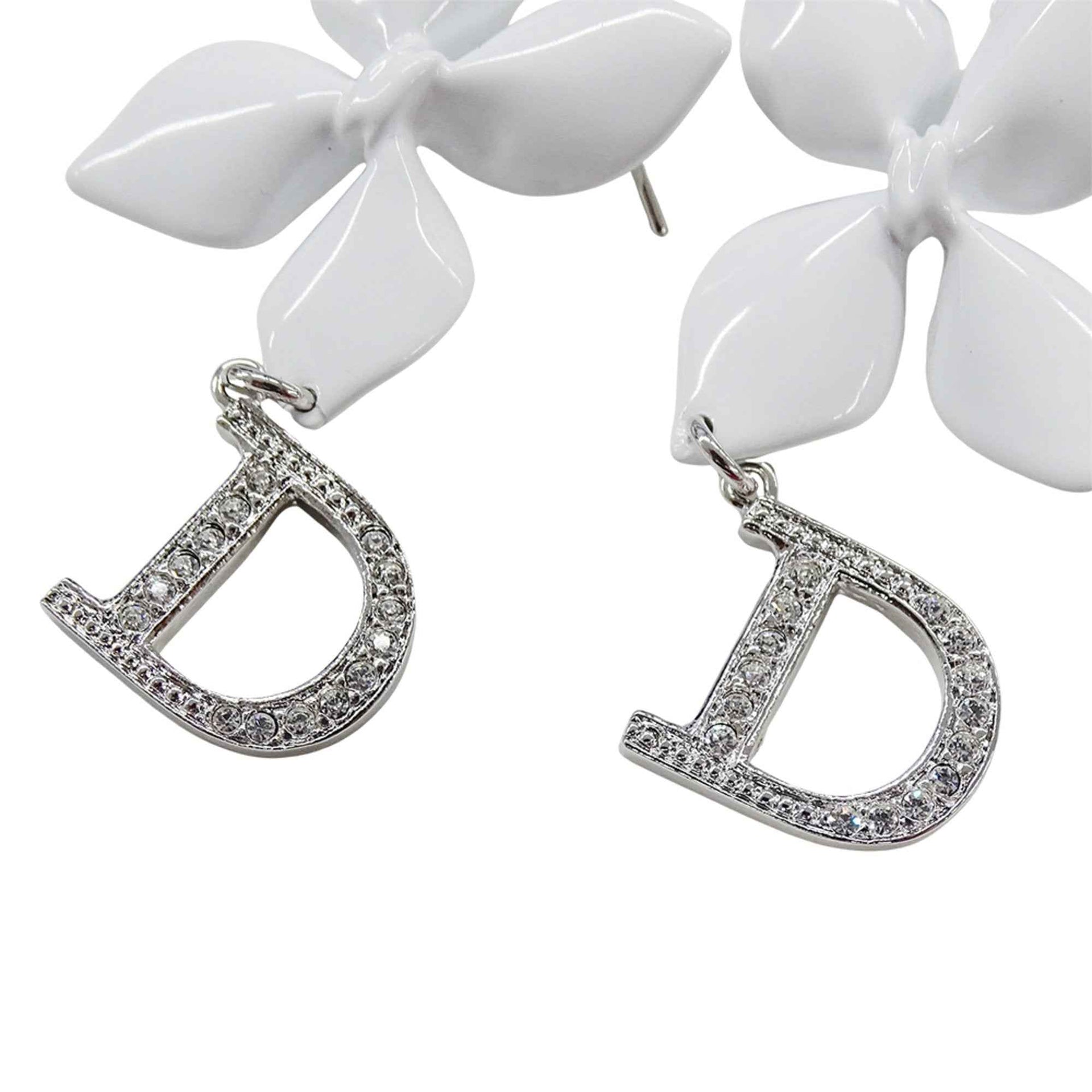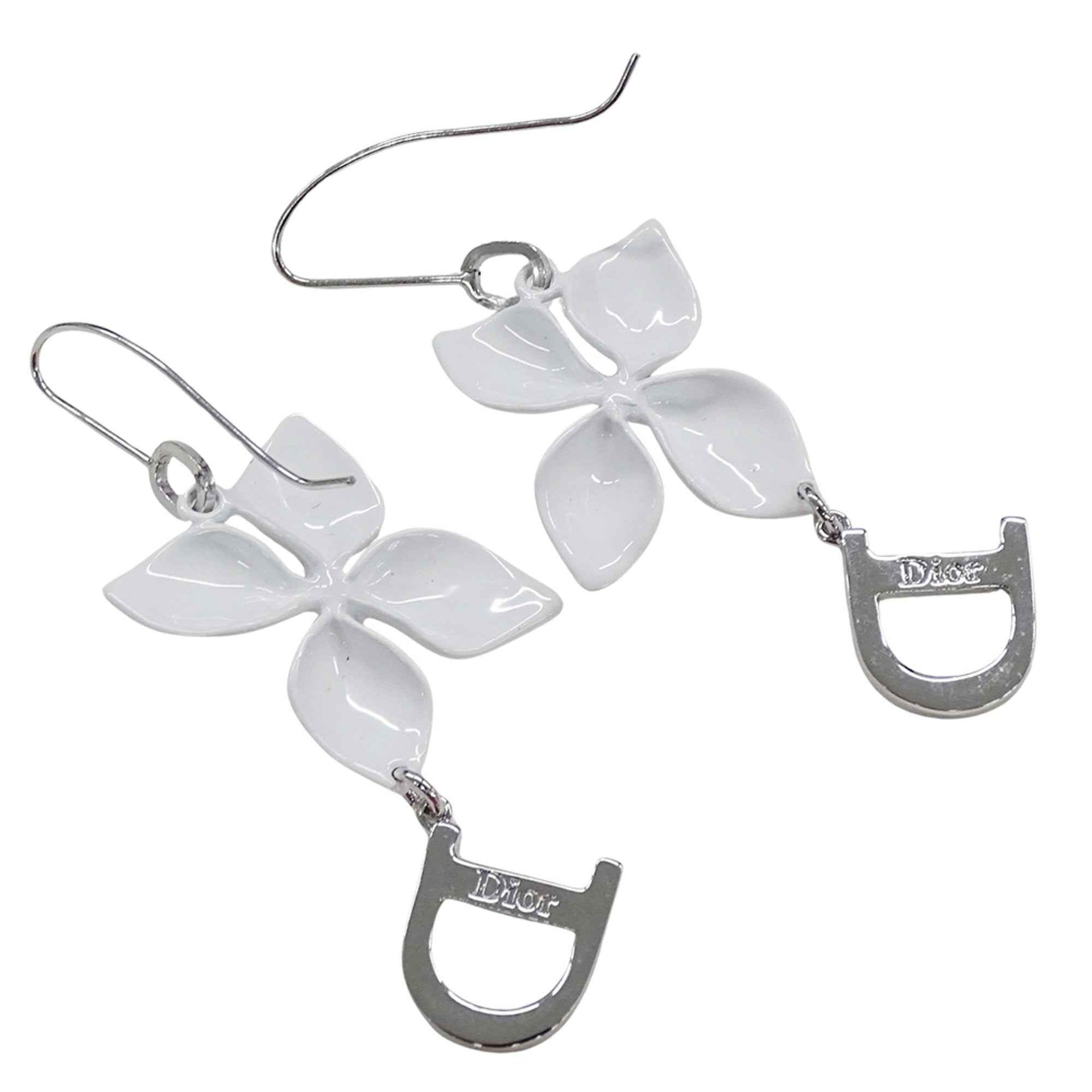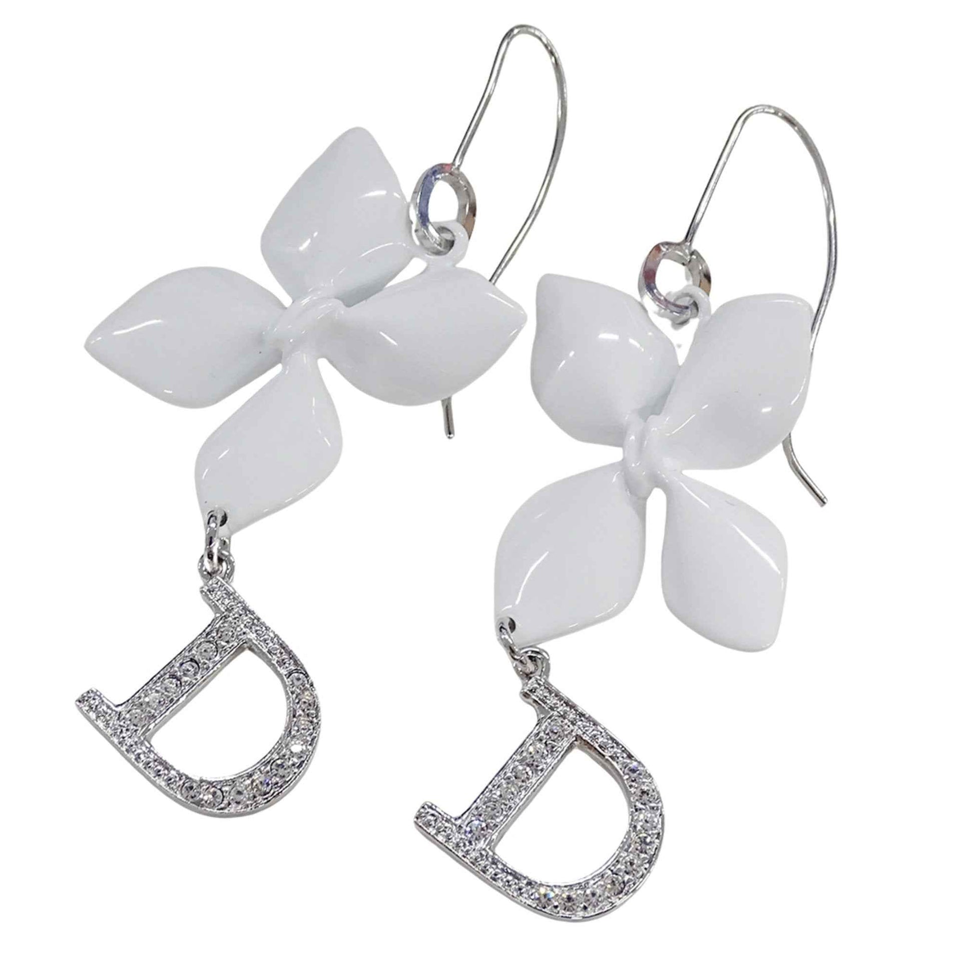 Christian Dior Dior Women\'s Flower Earrings, Silver with White Rhinestones, for Both Ears