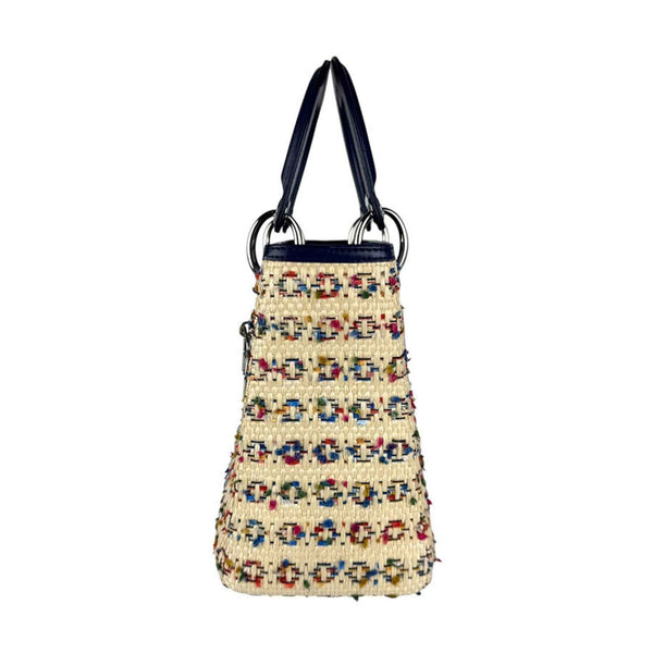 Christian Dior Lady handbag/shoulder bag in raffia and leather, beige, multicolor, navy, silver, women\'s z7035