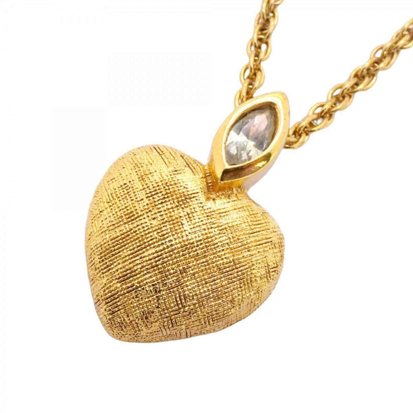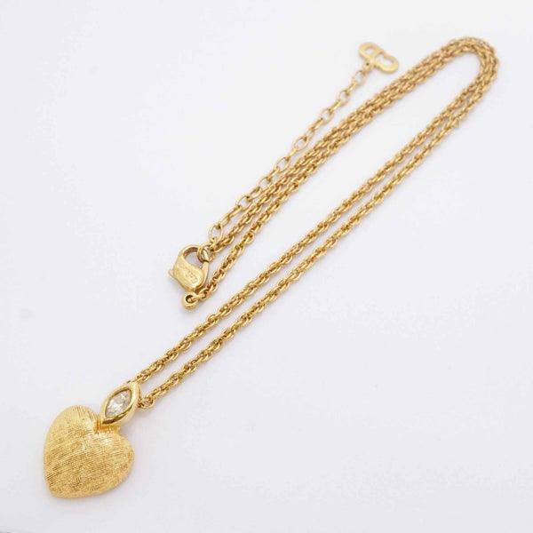 Christian Dior necklace with heart motif, GP plated, rhinestones, gold, for women
