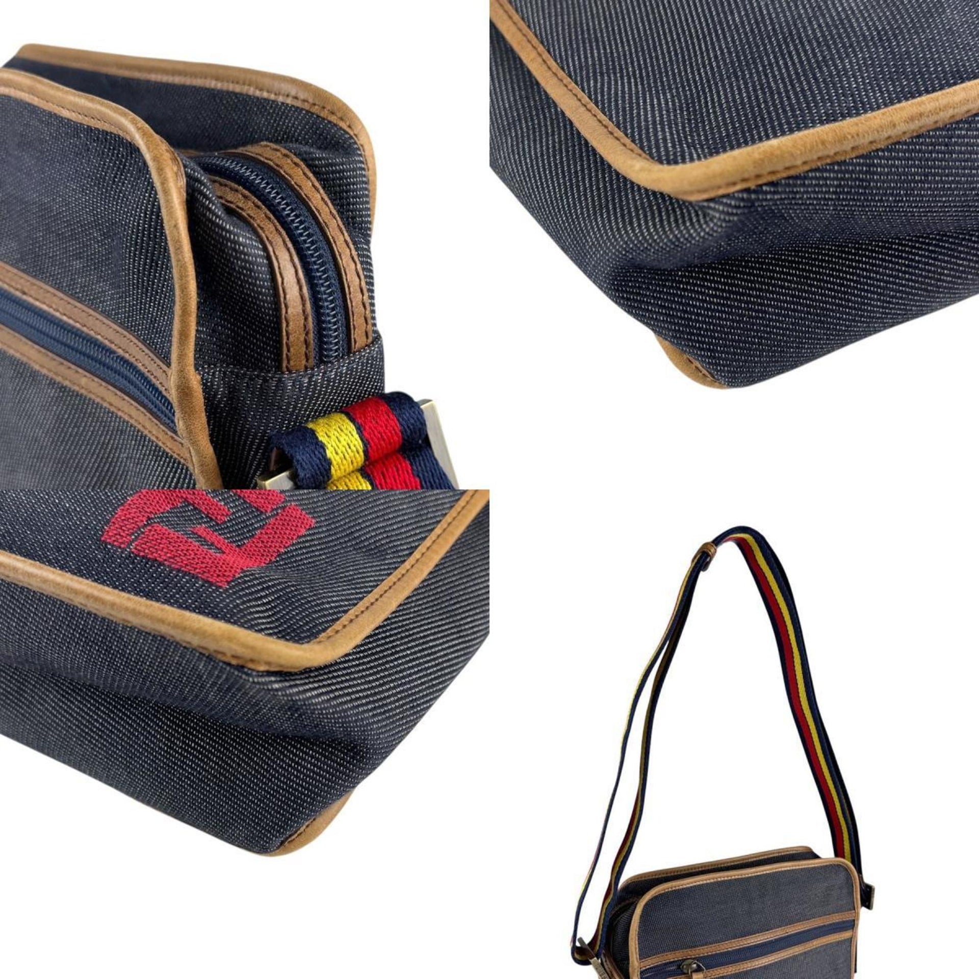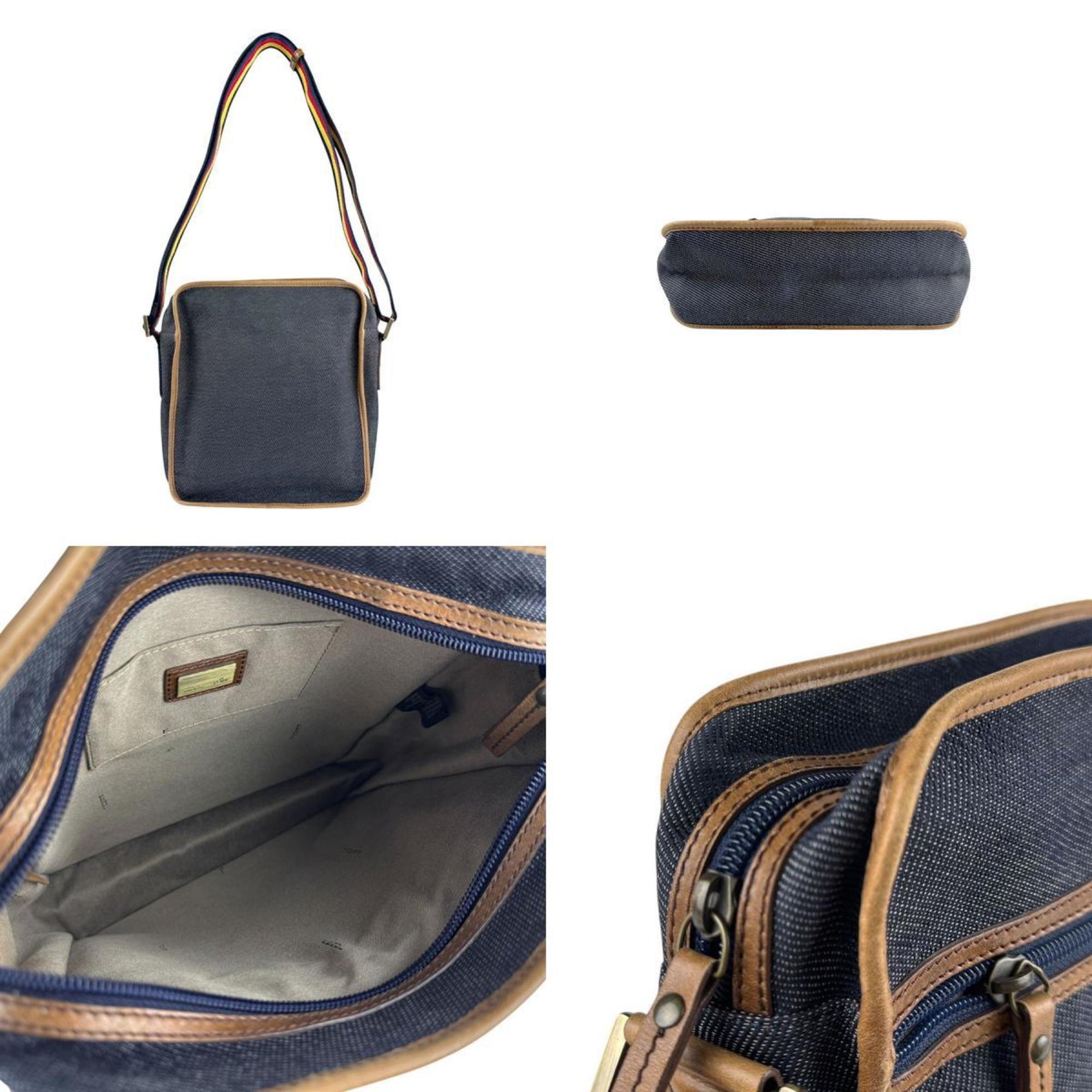 Christian Dior Shoulder Bag Denim Leather Navy x Brown Men\'s Women\'s z5852