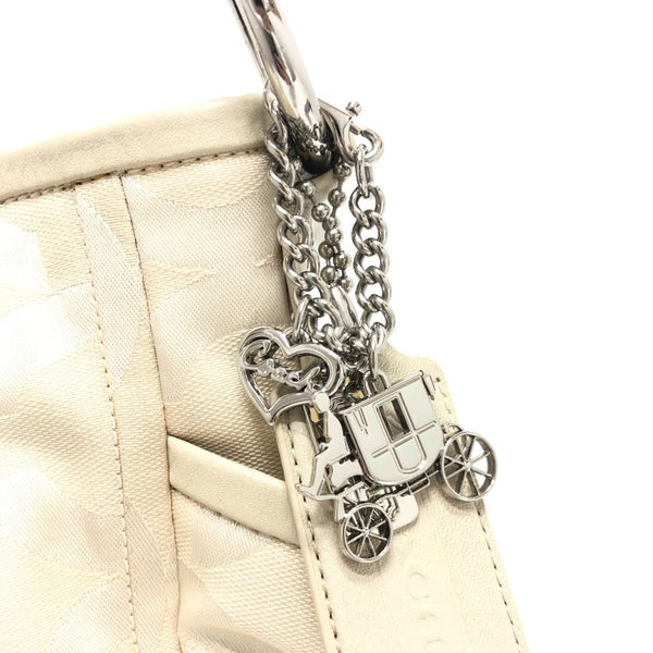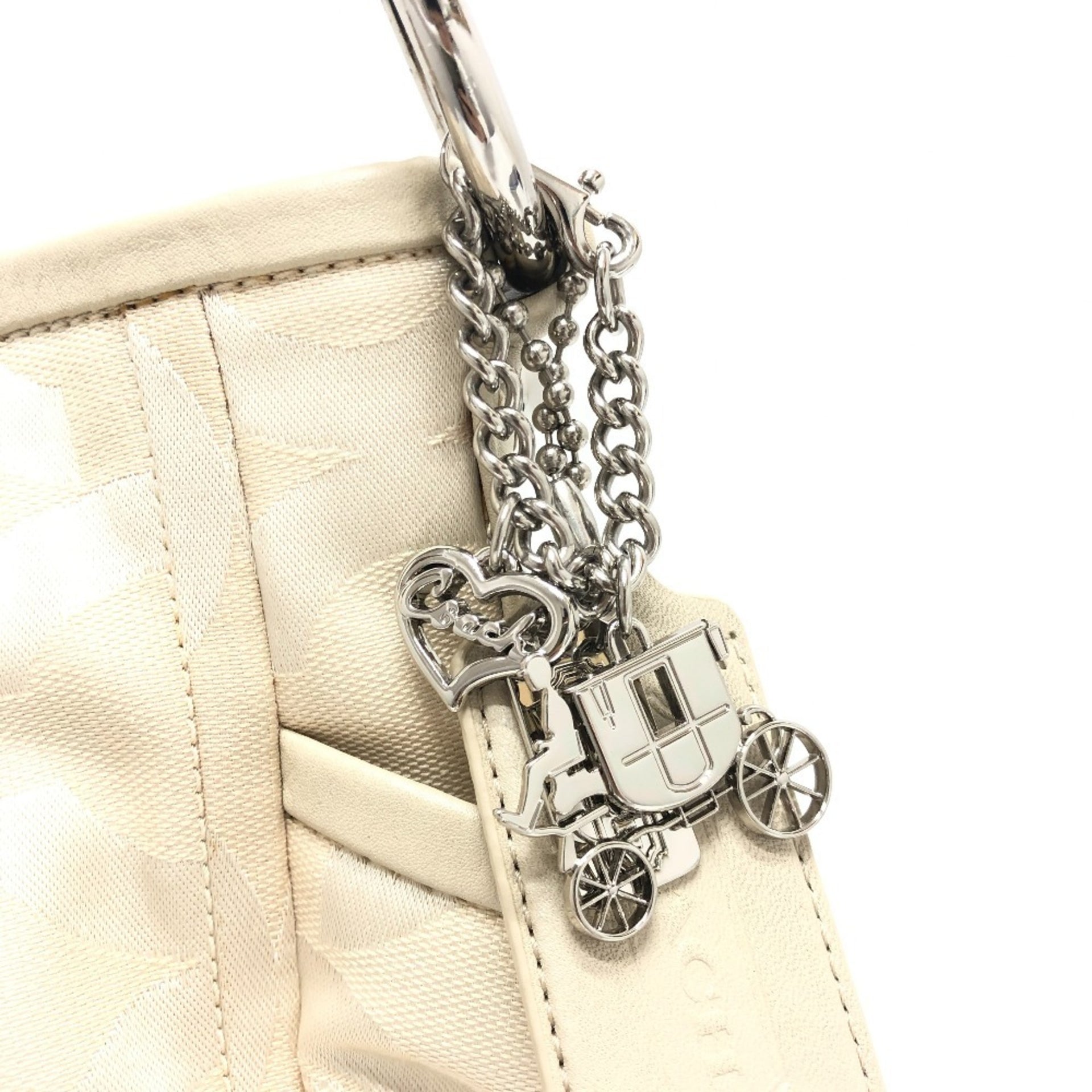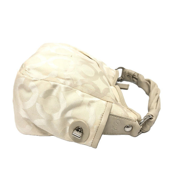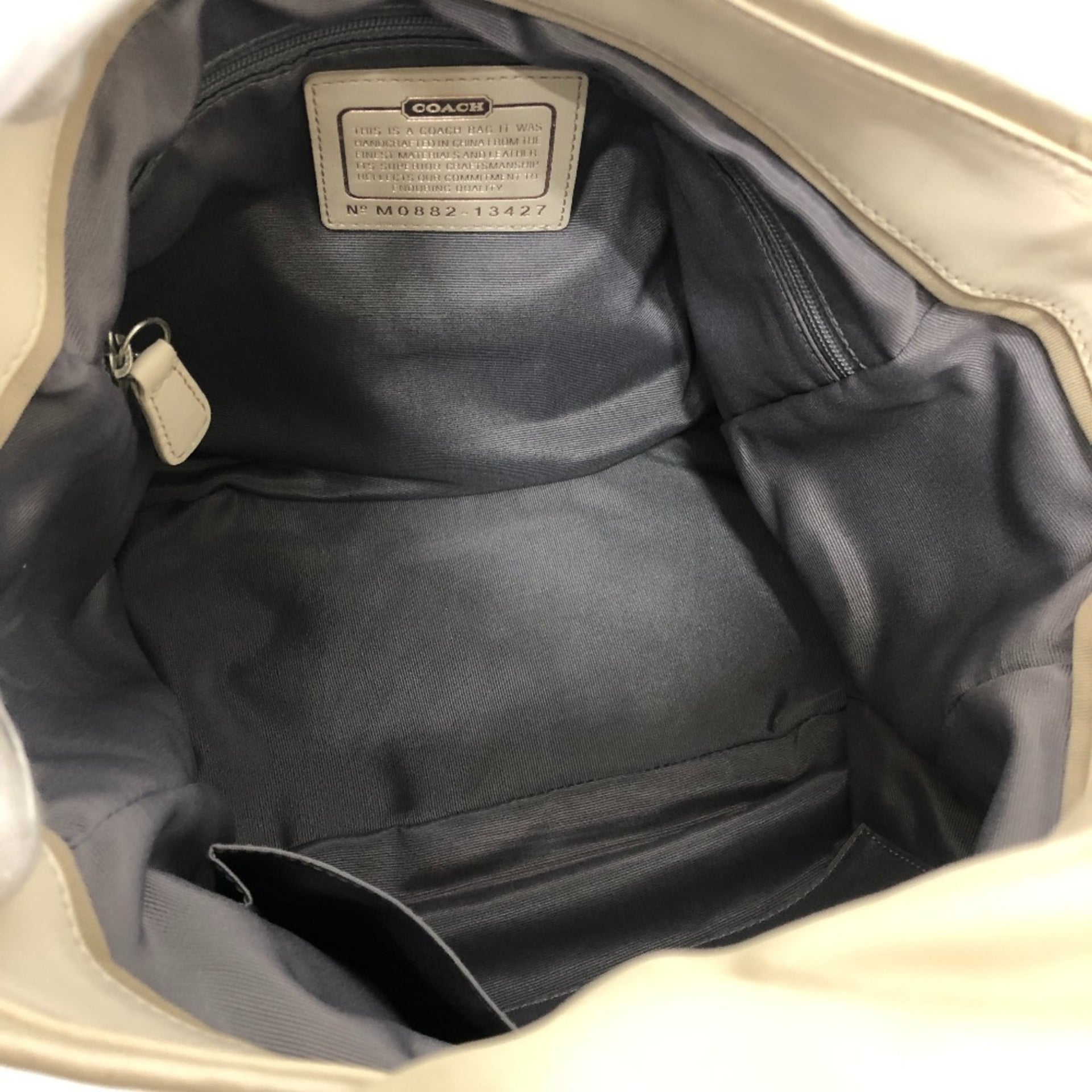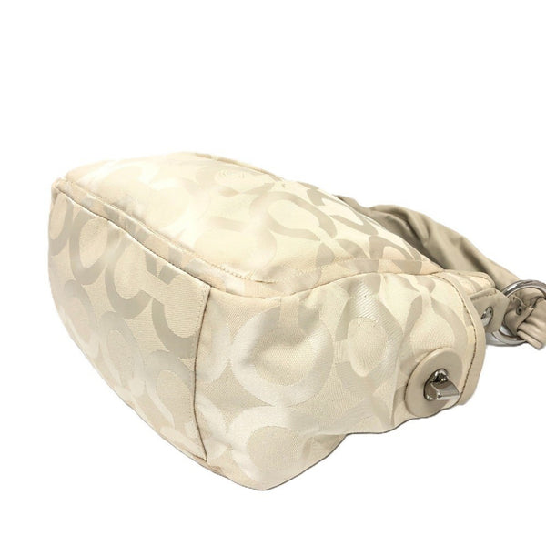 COACH 13427 Op Art Bag Shoulder Handbag Leather Canvas Women\'s Beige