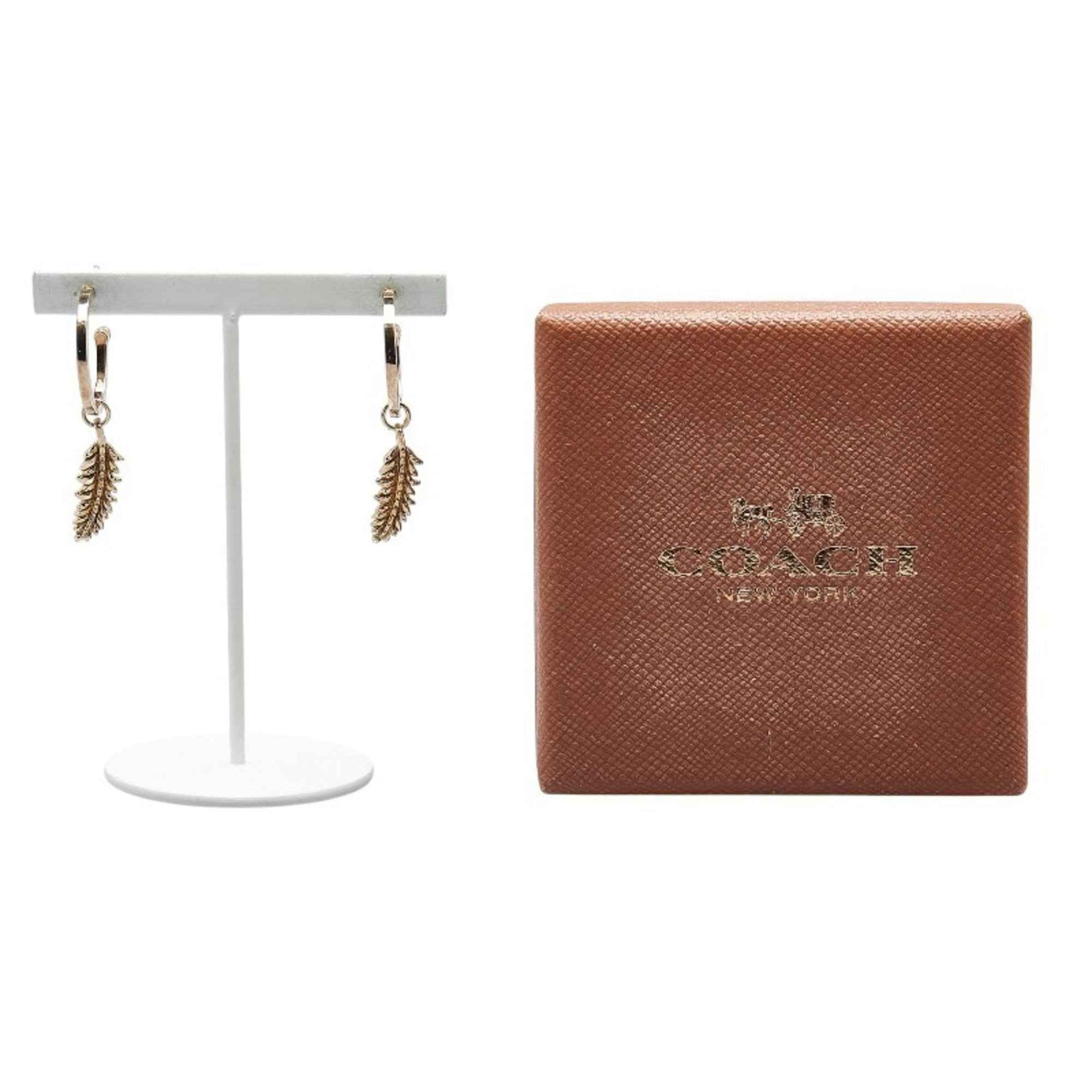 Coach feather motif earrings, gold plated, women\'s.