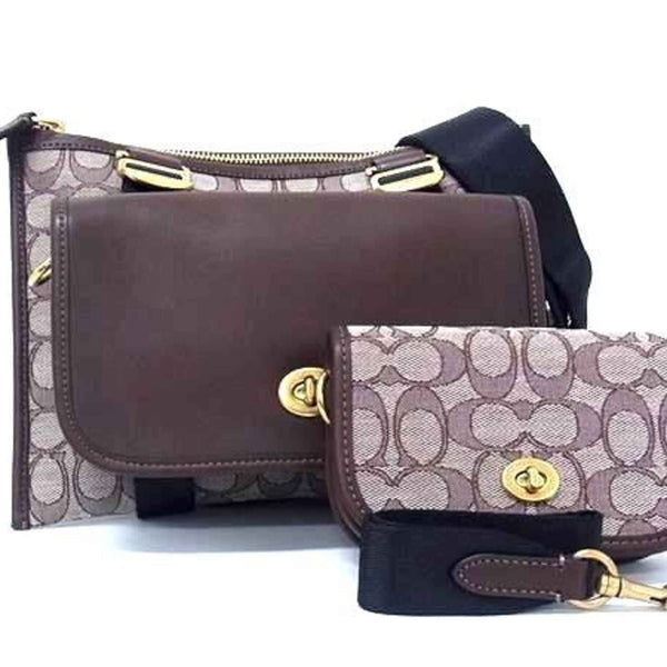 COACH Multi-Function Crossbody Shoulder Bag with Dinky C2613 in Brown Signature Jacquard Leather for Men and Women