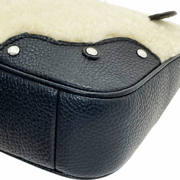 Coach Small Rider Pochette Shoulder Bag in Ivory and Black Boa Leather (36490) Studded Crossbody Mini (SS-15806).