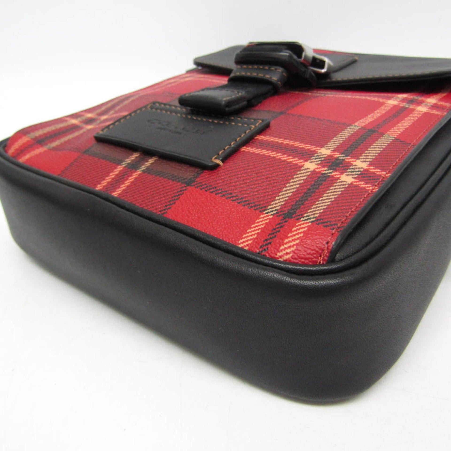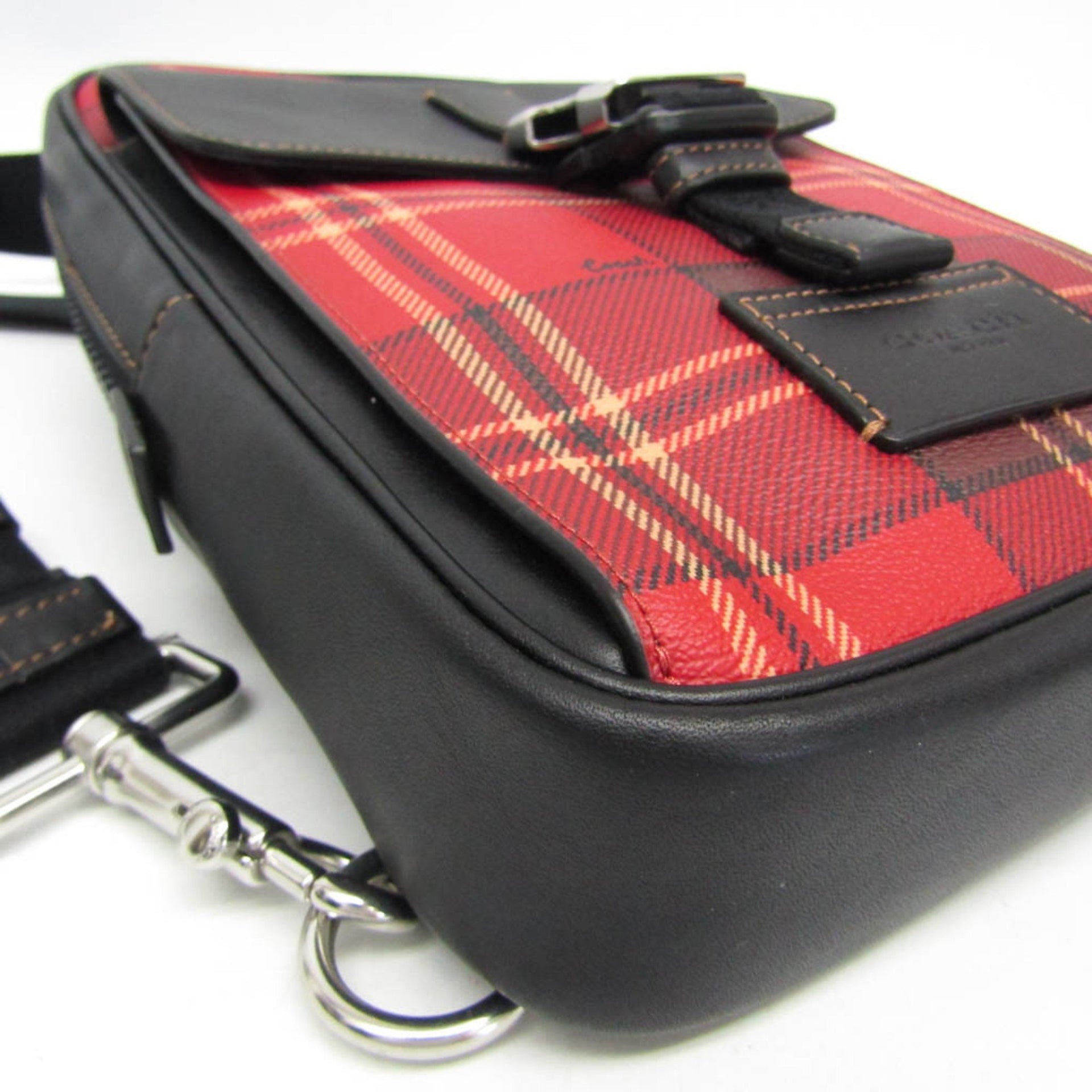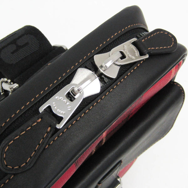 Coach Track Pack With Tartan Plaid Print CC029 Men\'s Leather,PVC Sling Bag Black,Red Color