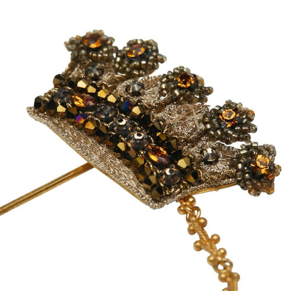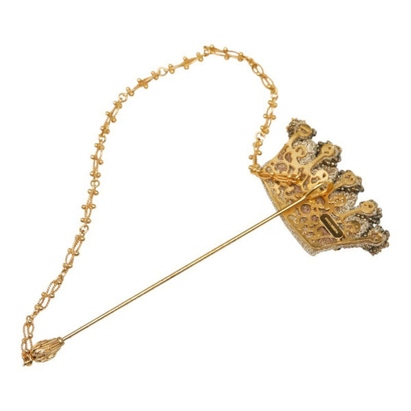 Dolce & Gabbana Crown Motif Rhinestone Brooch, Gold Plated, Women\'s