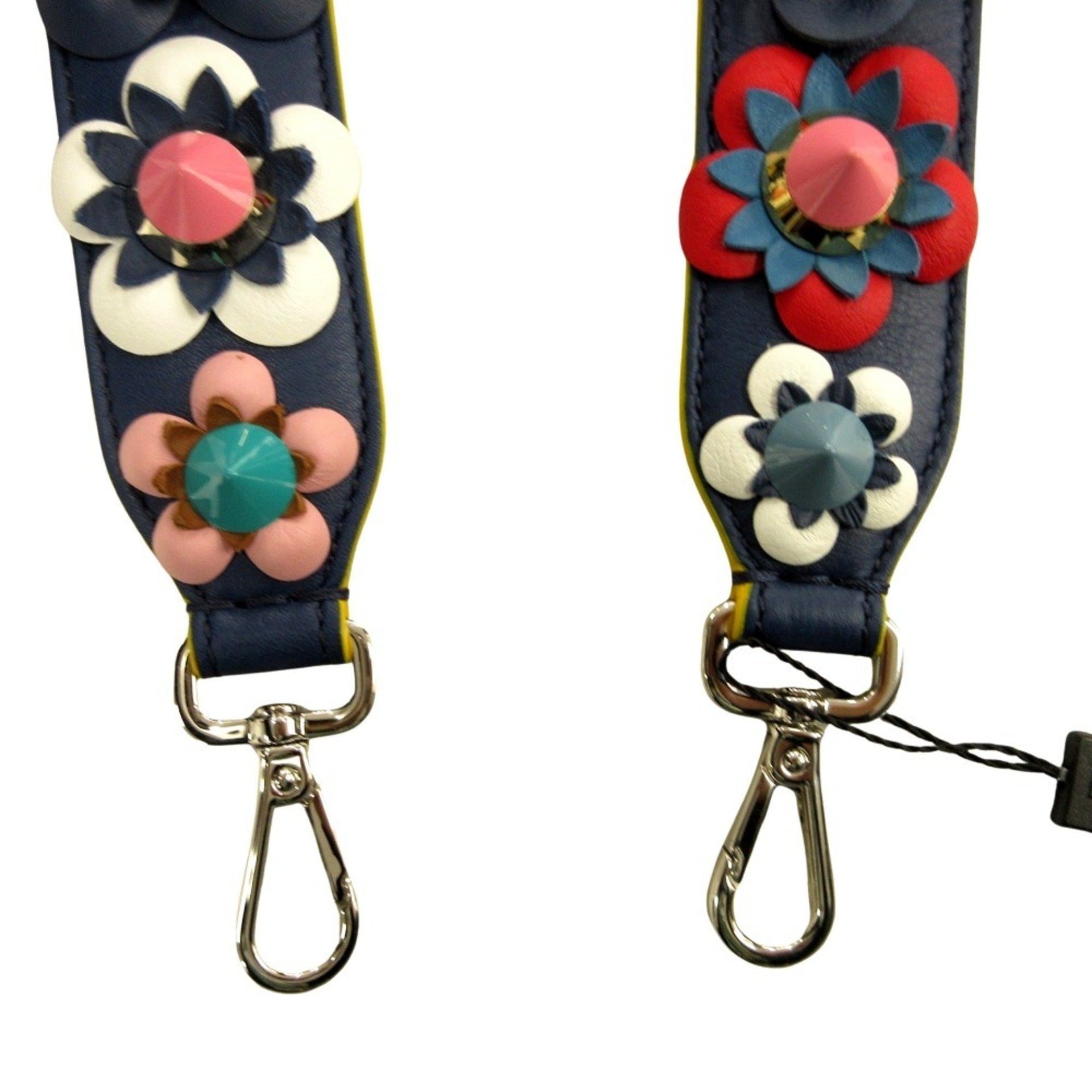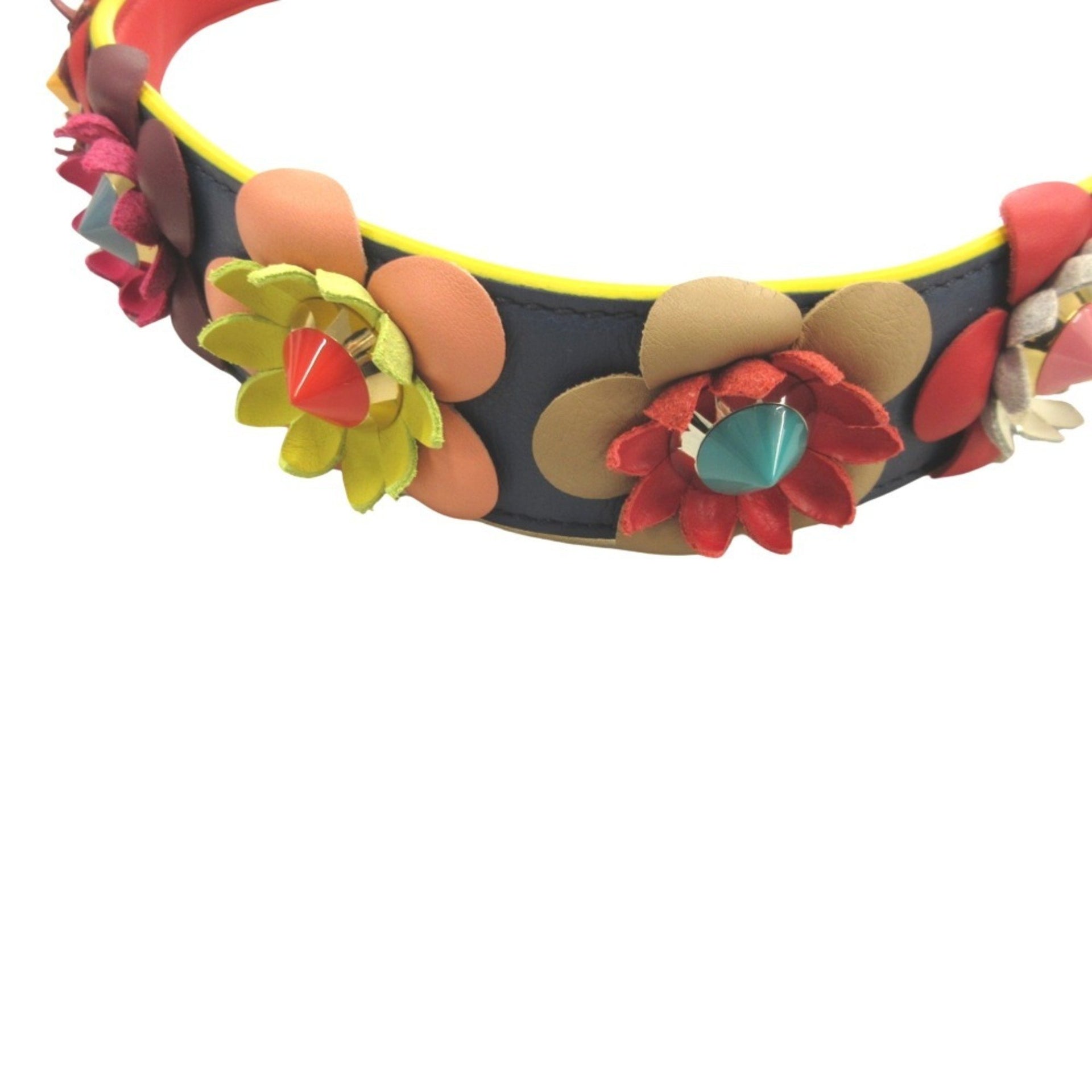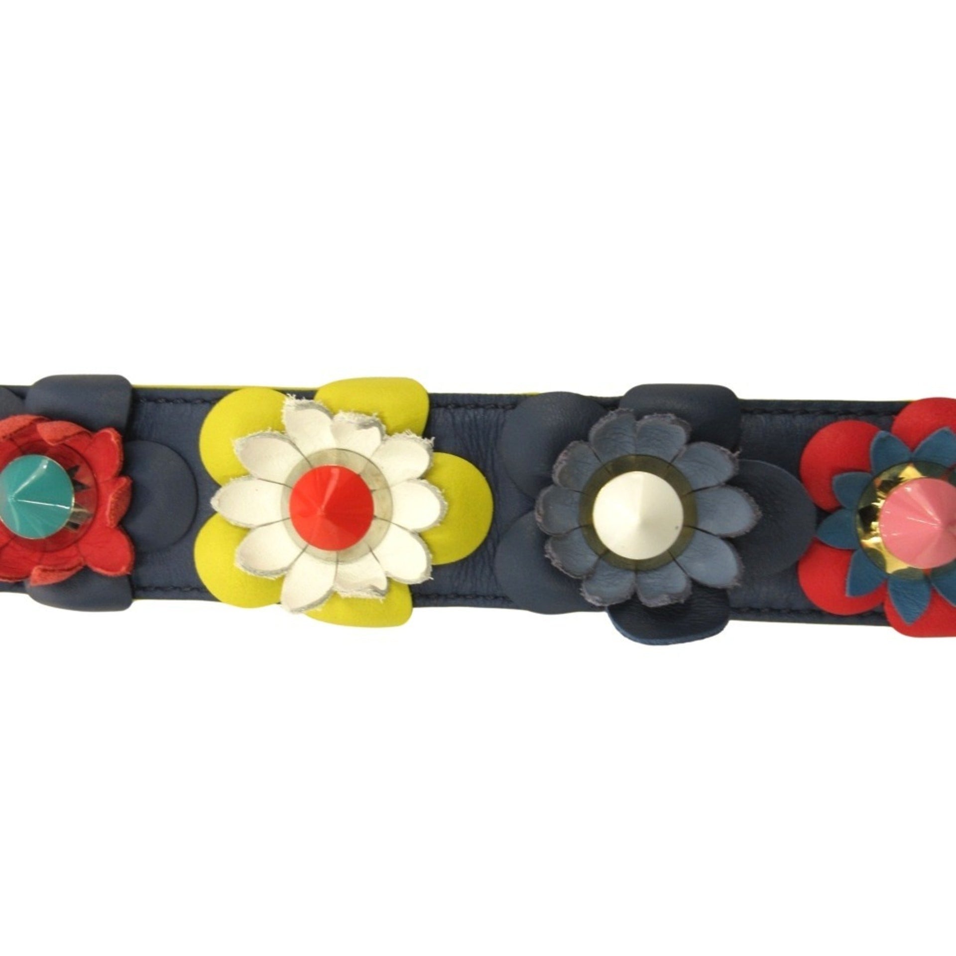 FENDI Flower Studs Strap You Webbing Shoulder Leather Bag Accessory Multicolor Women\'s