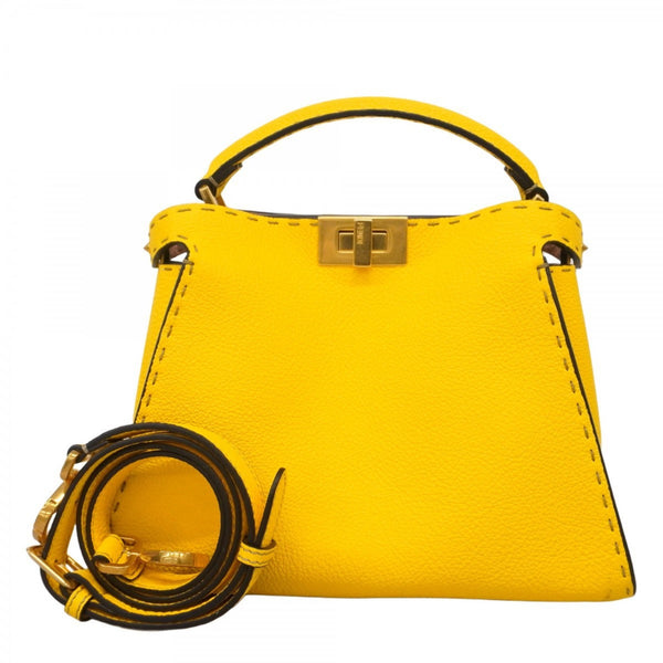 Fendi Selleria Peekaboo Essential Leather Handbag in Yellow, 2-Way Bag for Women