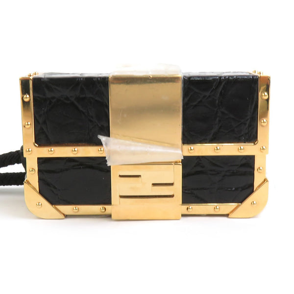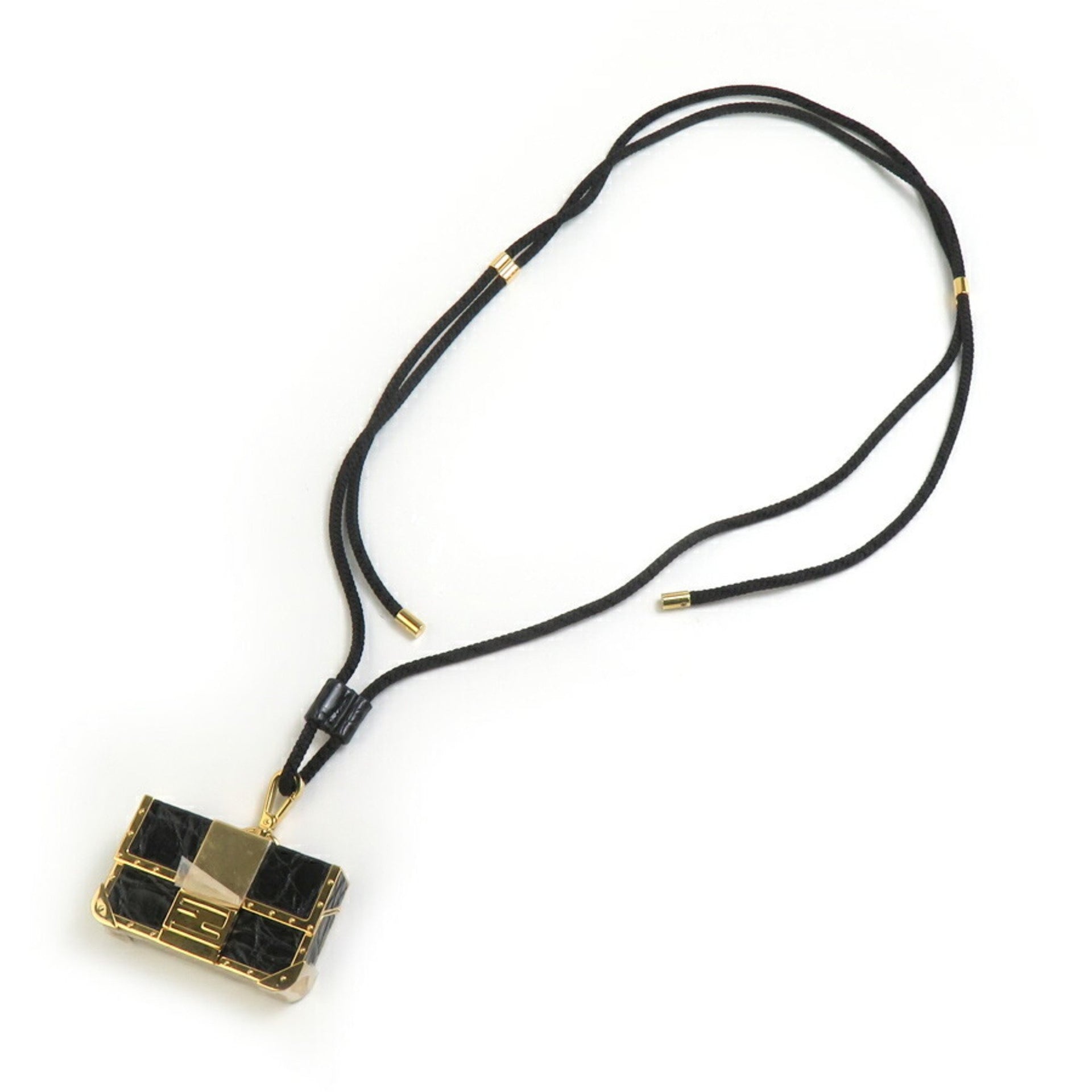 FENDI Tech Ledger Nano X Baguette Wallet Holder Metal Leather Black x Gold Men Women 90075a