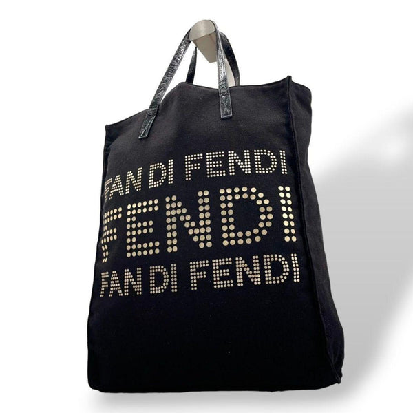Fendi Tote Bag with Large Logo and Studs, Black Canvas Leather, One-Shoulder Bag, Can Be Carried Over the Shoulder or Handbag, T1
