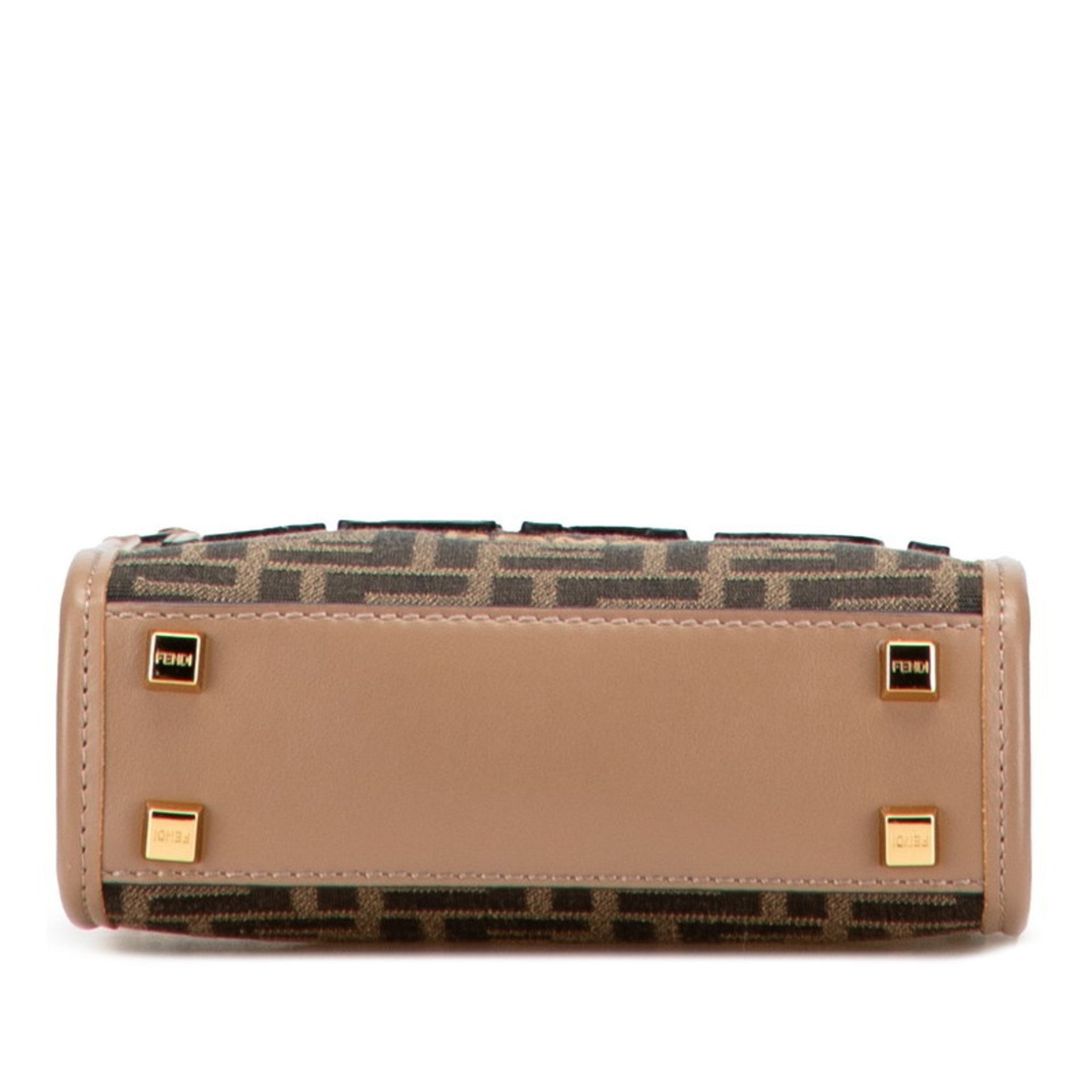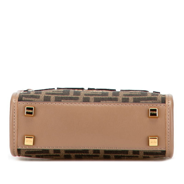 Fendi Zucca FF Fabric Sunshine Shopper Small Handbag/Shoulder Bag 2WAY 8BS092 Beige Brown Canvas Leather Women\'s FENDI