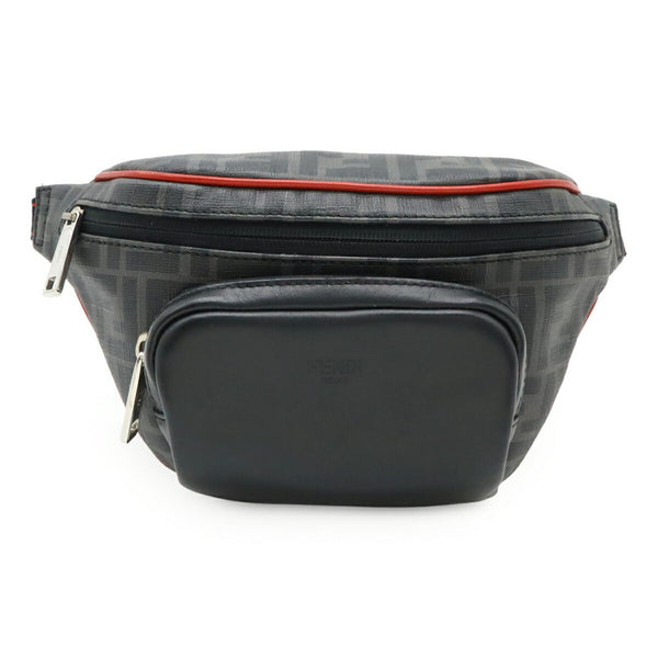 FENDI Zucca print body bag/waist pouch/waist bag in PVC and leather black red (7V46)