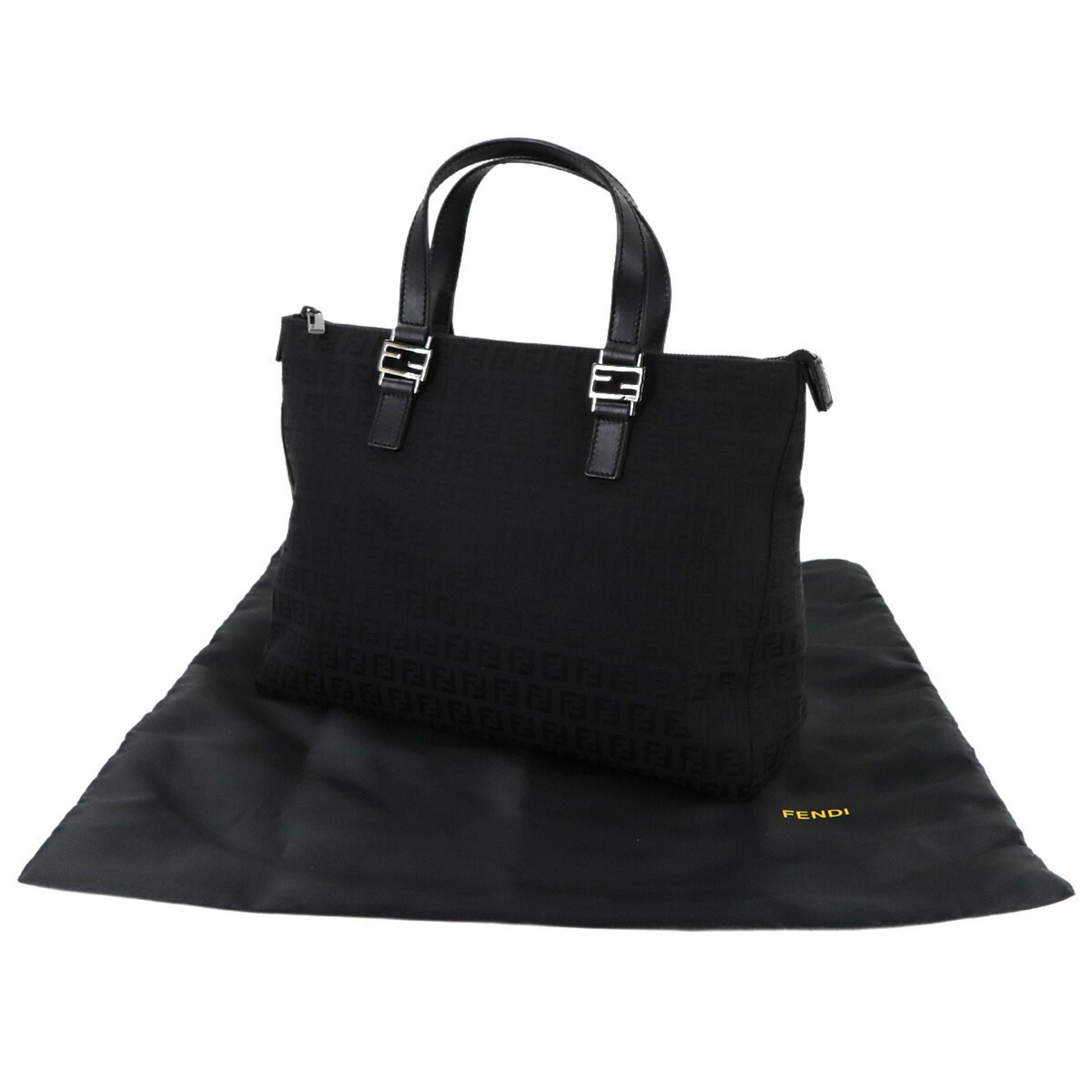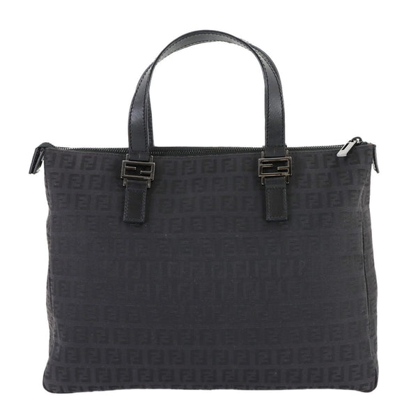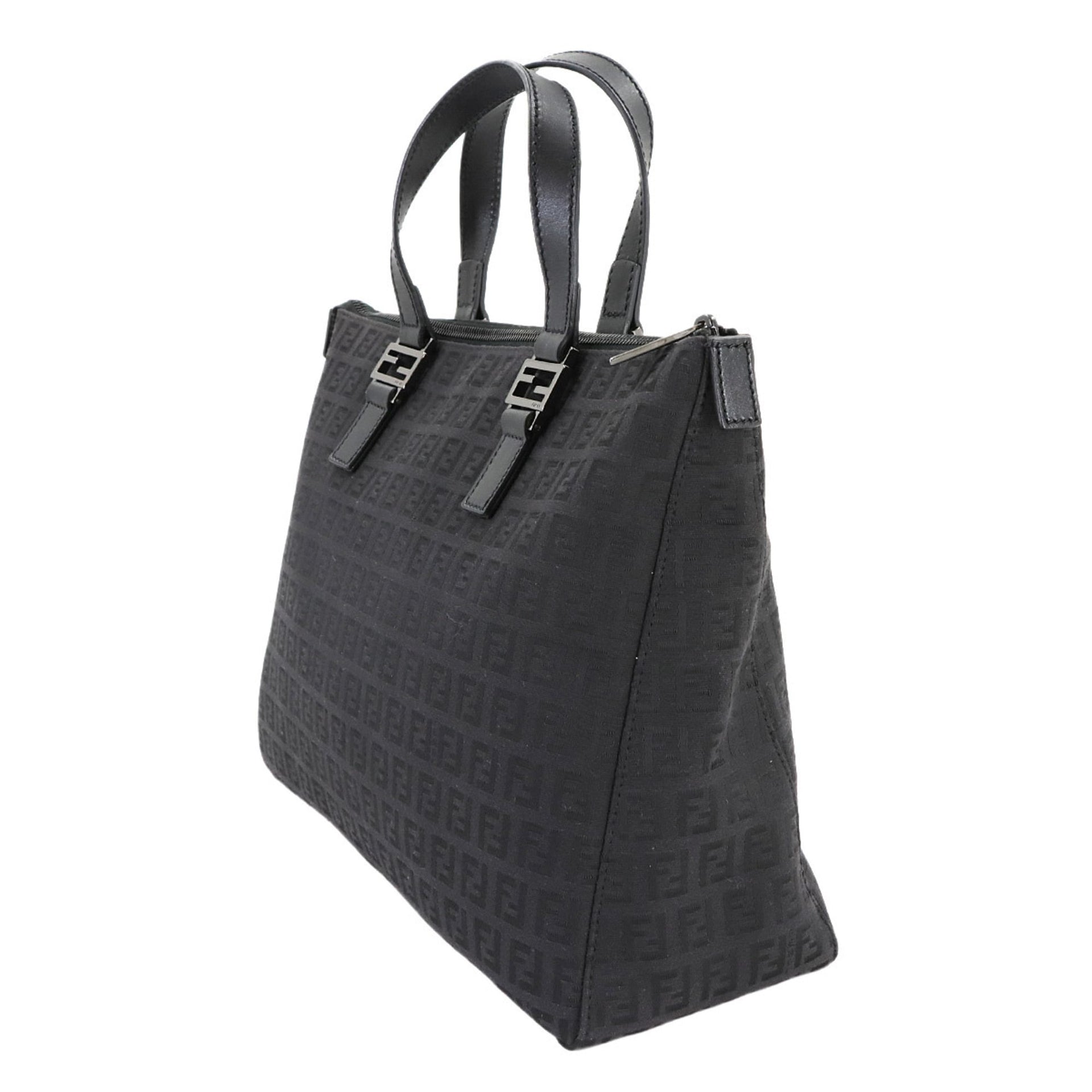 Fendi Zucchino Tote Bag, Canvas and Leather, Black, 8BH138, Black Hardware