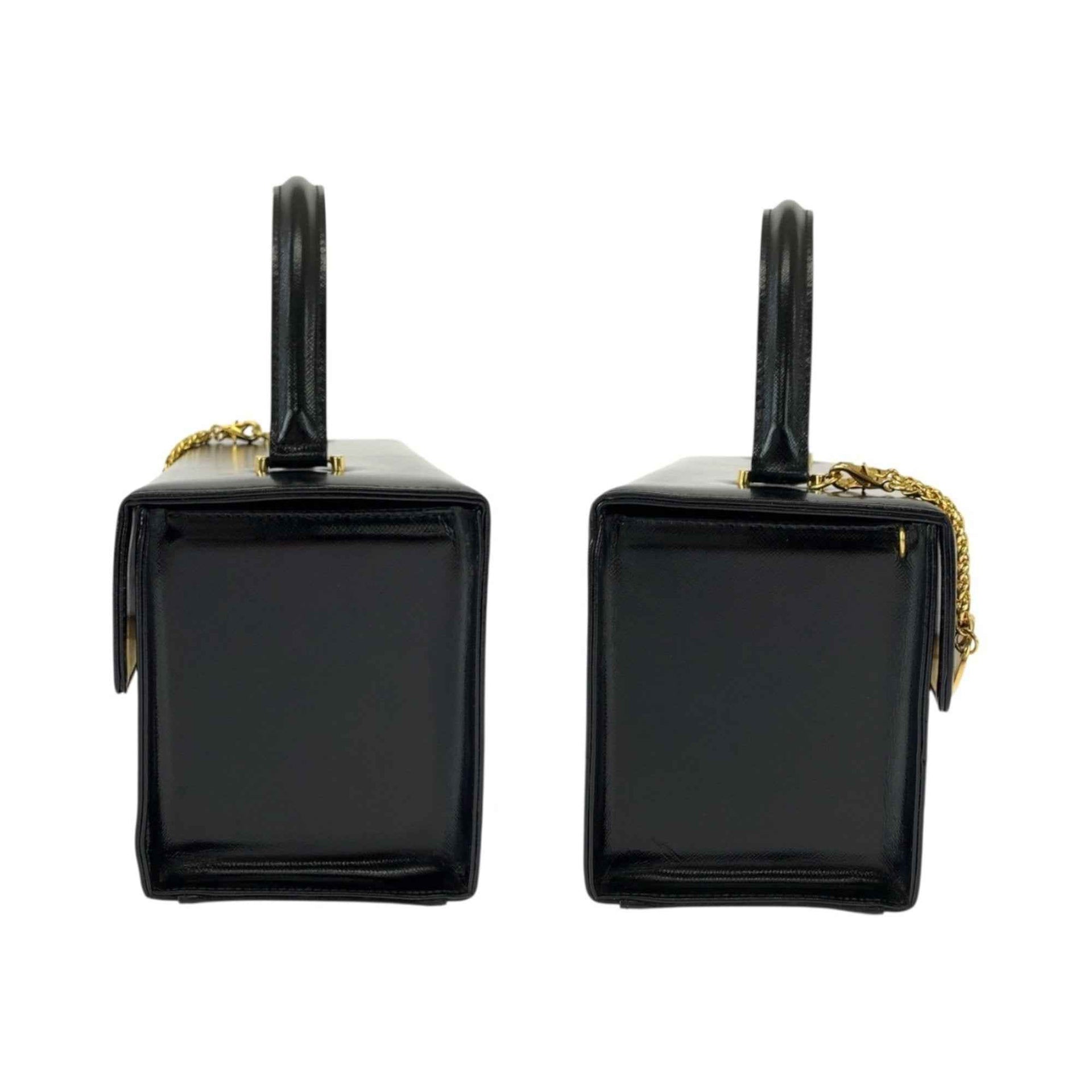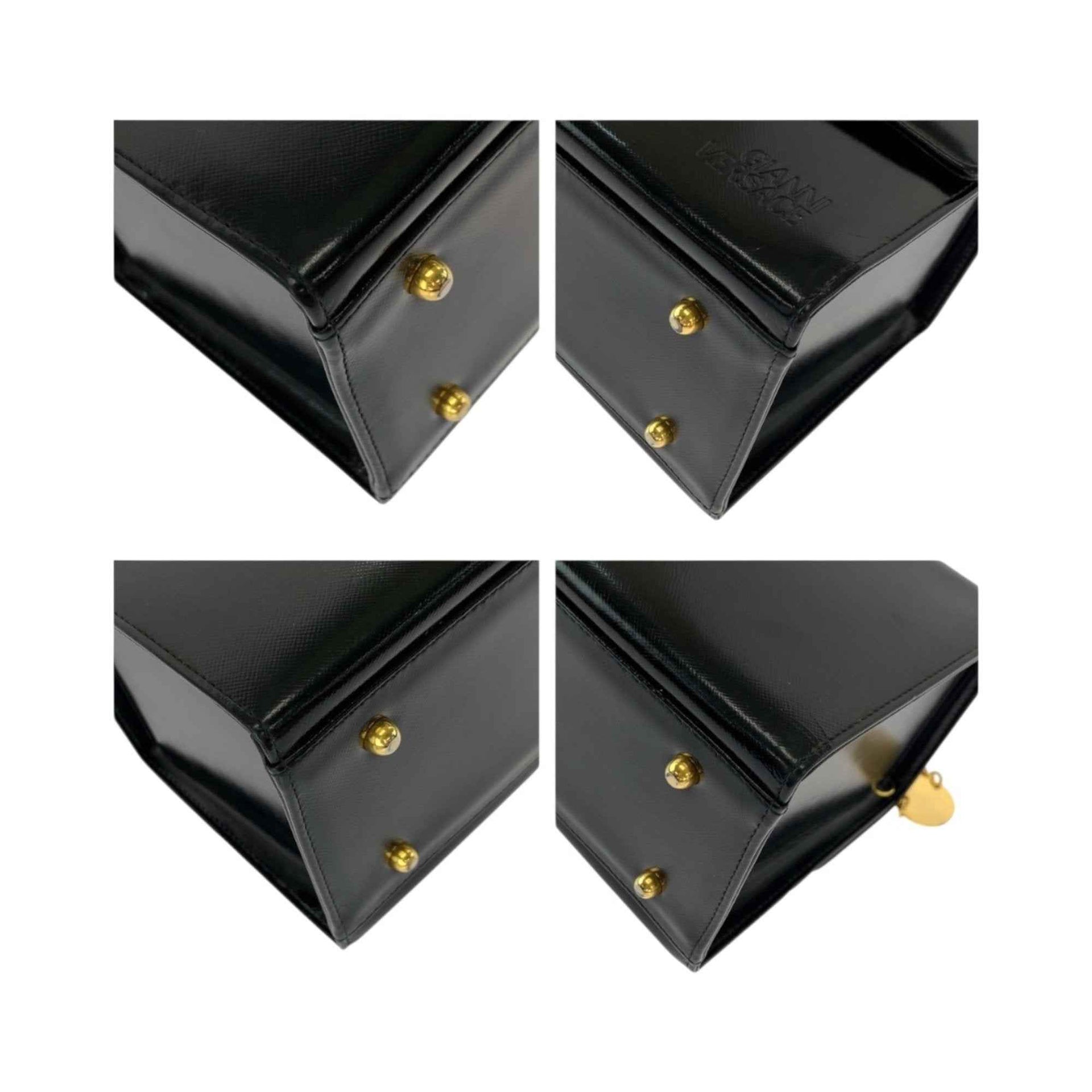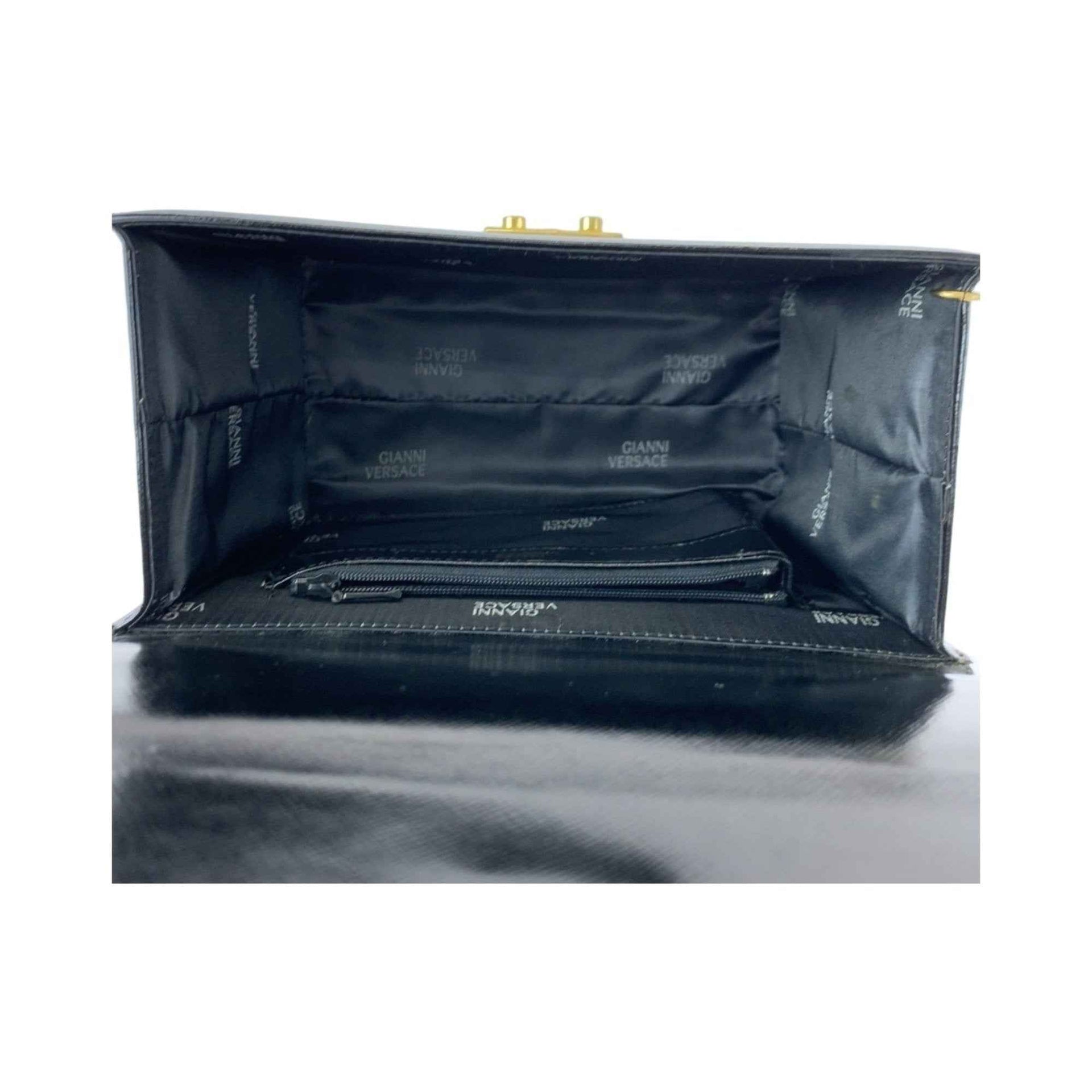 Gianni Versace Vintage Sunburst Black Leather Handbag Vanity Bag for Women with Gold Hardware