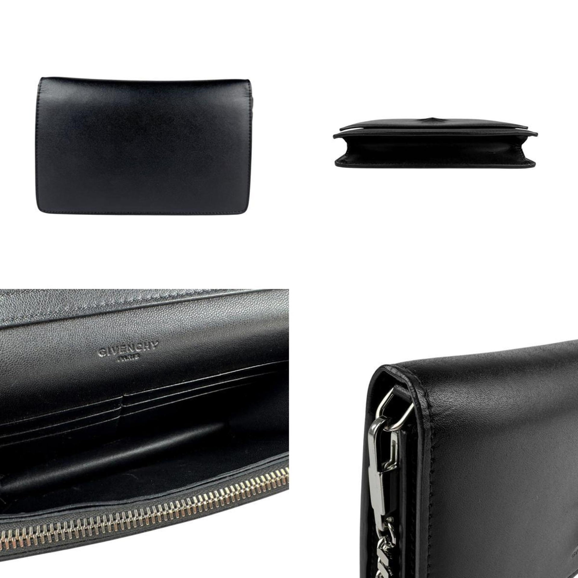GIVENCHY Wallet Chain Shoulder Bag Leather Metal Black Silver Women\'s z5760