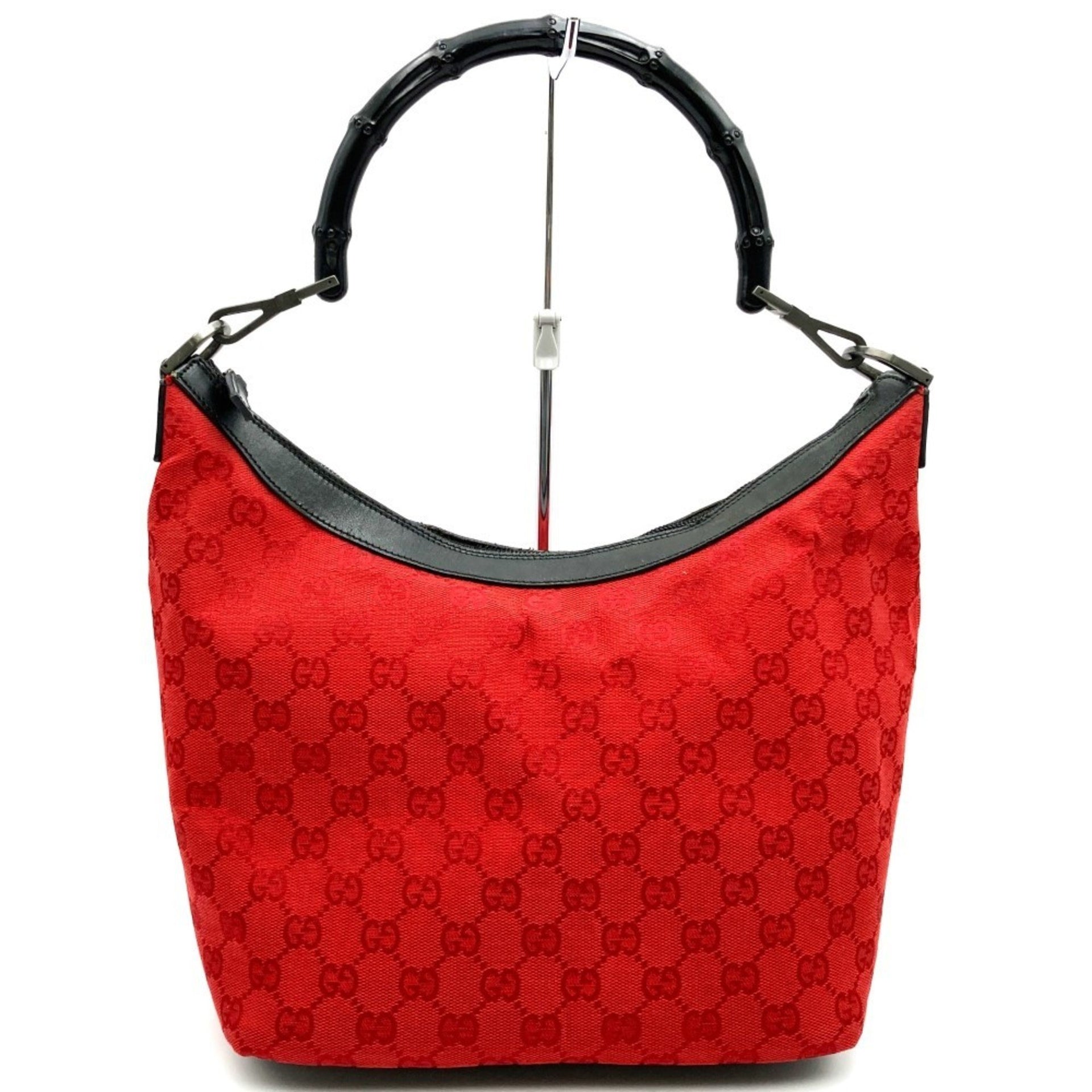 GUCCI 000/0531 Shoulder Bag/Handbag GG Canvas Bamboo Red Black Women\'s