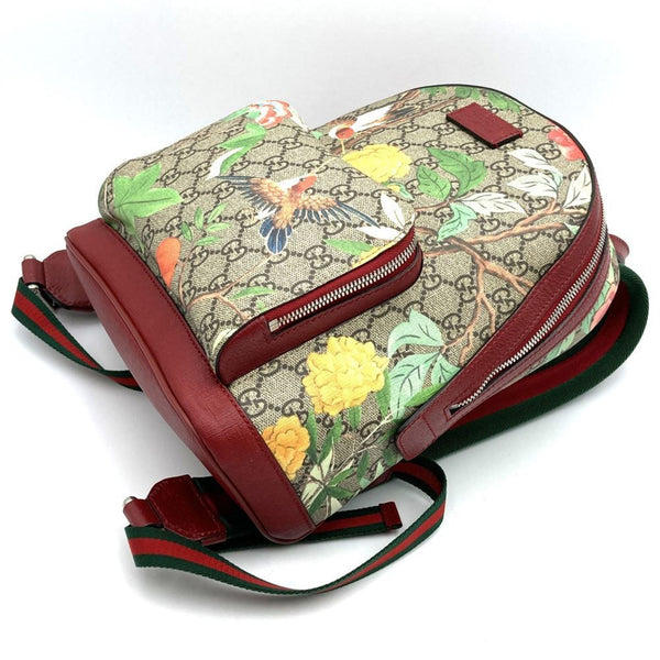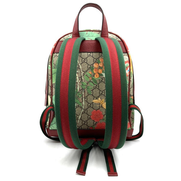 GUCCI 2016 Tian 427042 Backpack/Daypack Bird and Flower Multicolor Green/Yellow/Red GG Supreme Canvas/Leather Women\'s