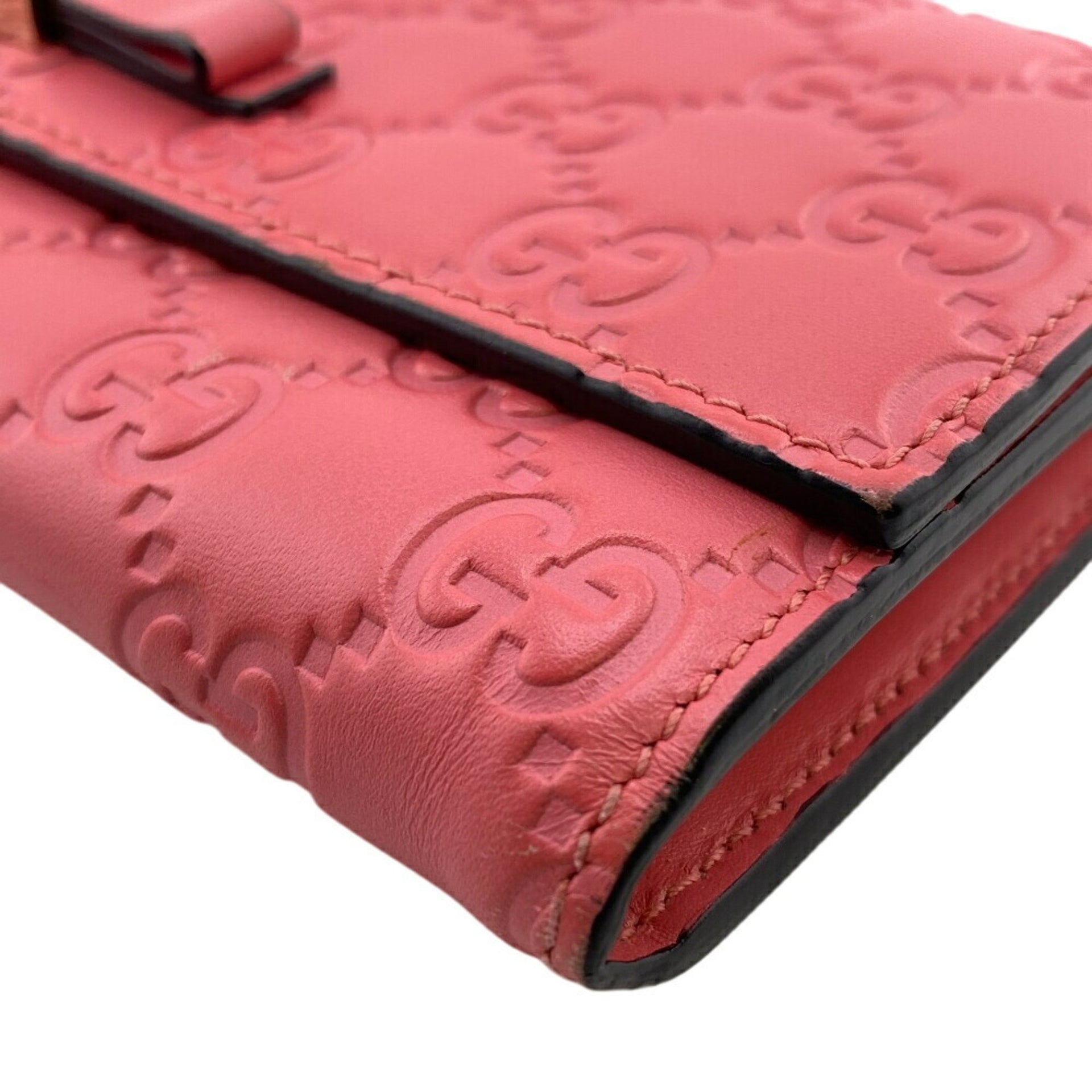 GUCCI 388679 Flap Ribbon GG Shima Long Wallet Pink