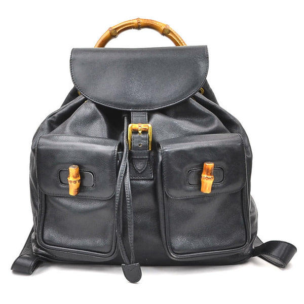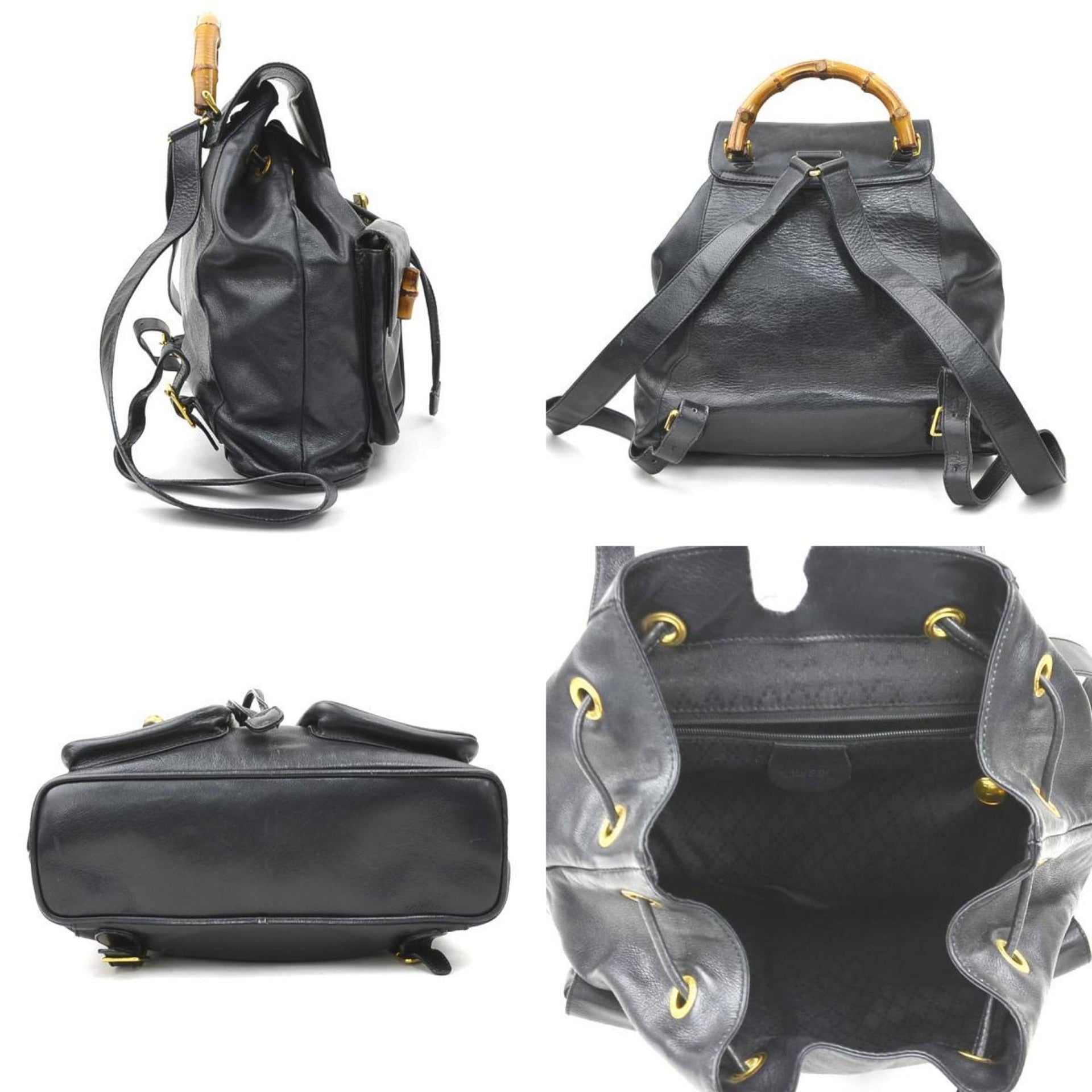 Gucci Bamboo Leather Backpack in Black and Gold for Women (e61095a)