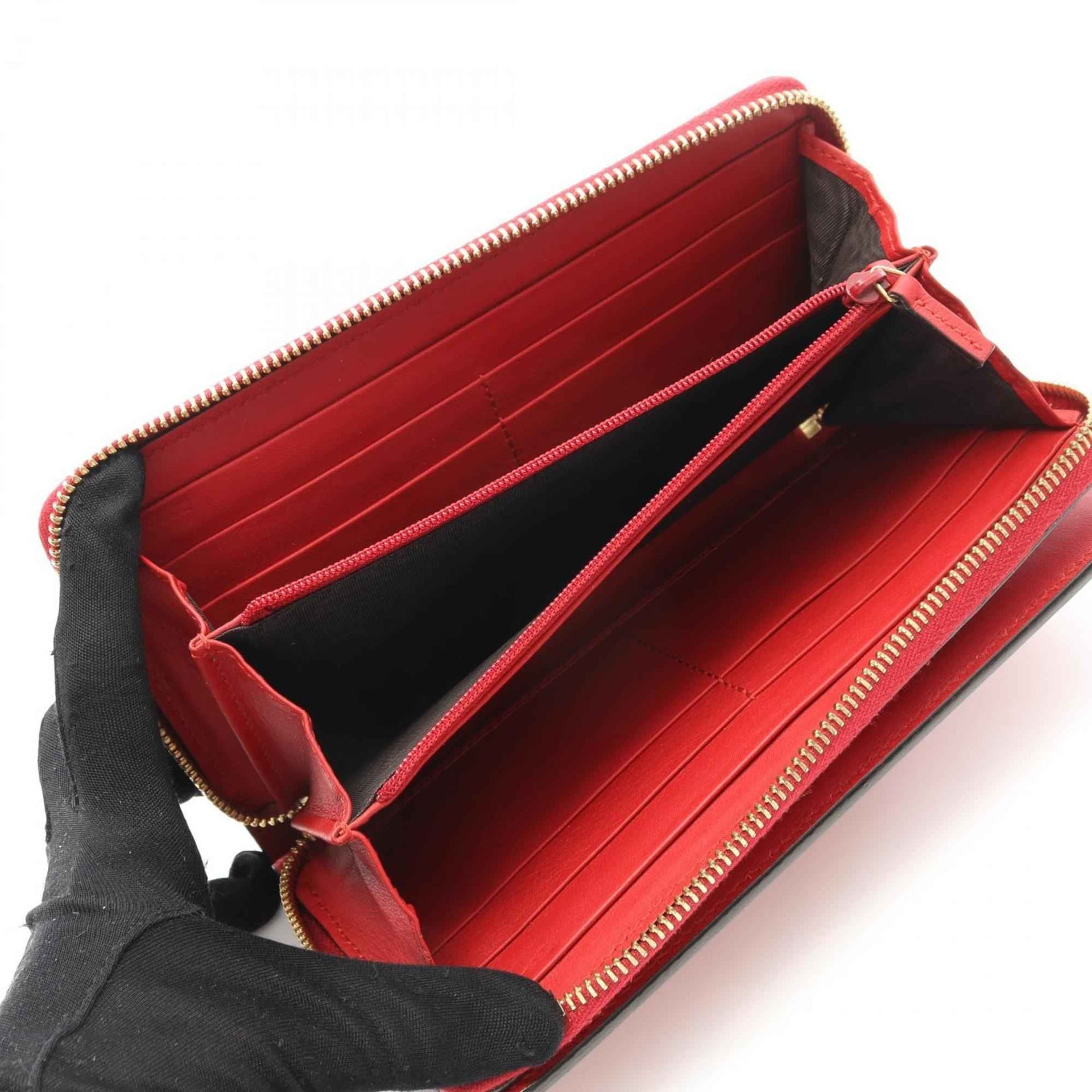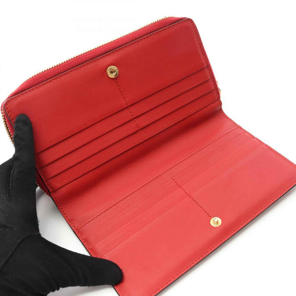 Gucci Bamboo Round Long Wallet, Leather, Women\'s, Red, 453160