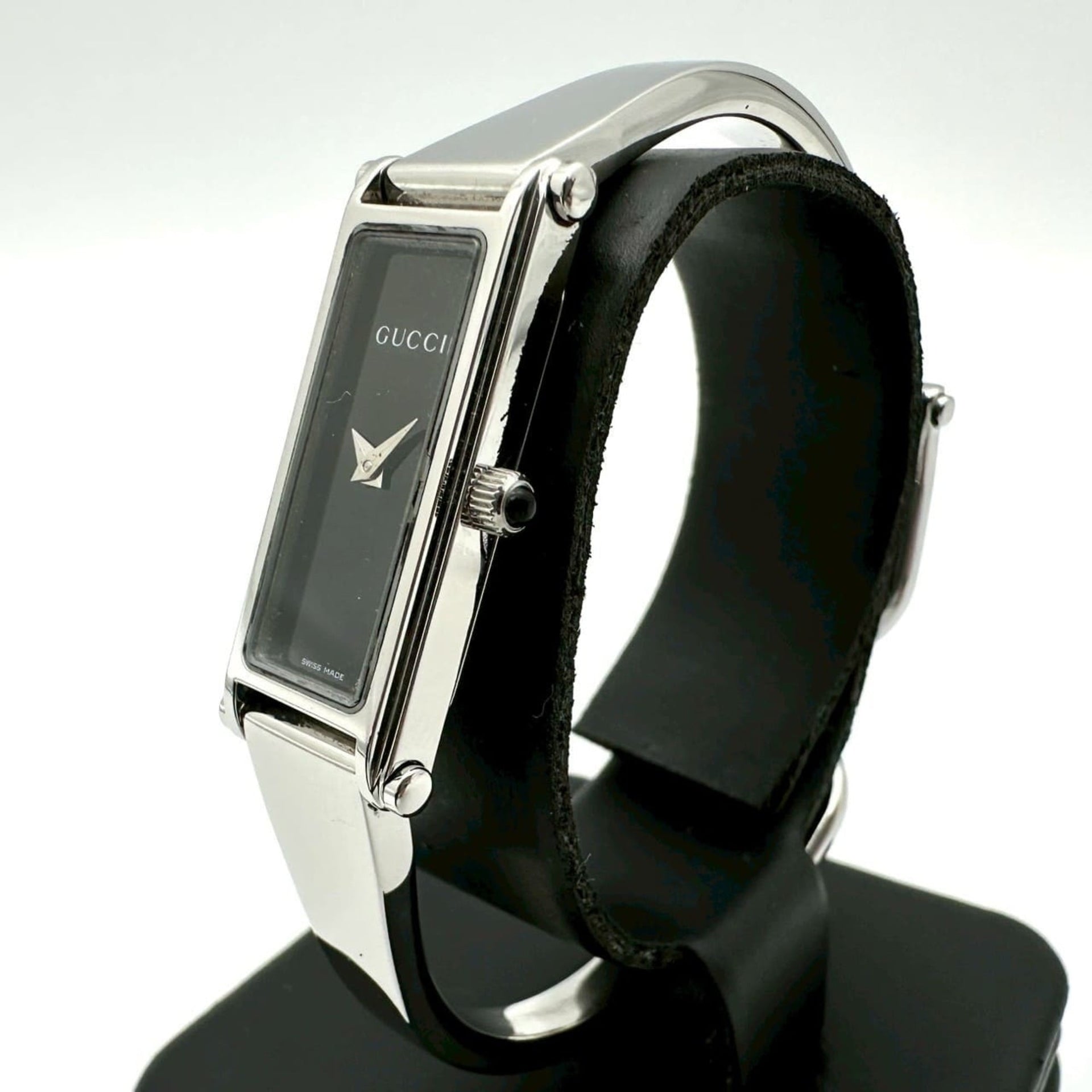 GUCCI Bangle Watch 1500L Quartz Stainless Steel Black Women\'s