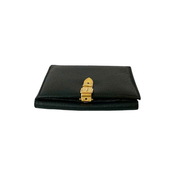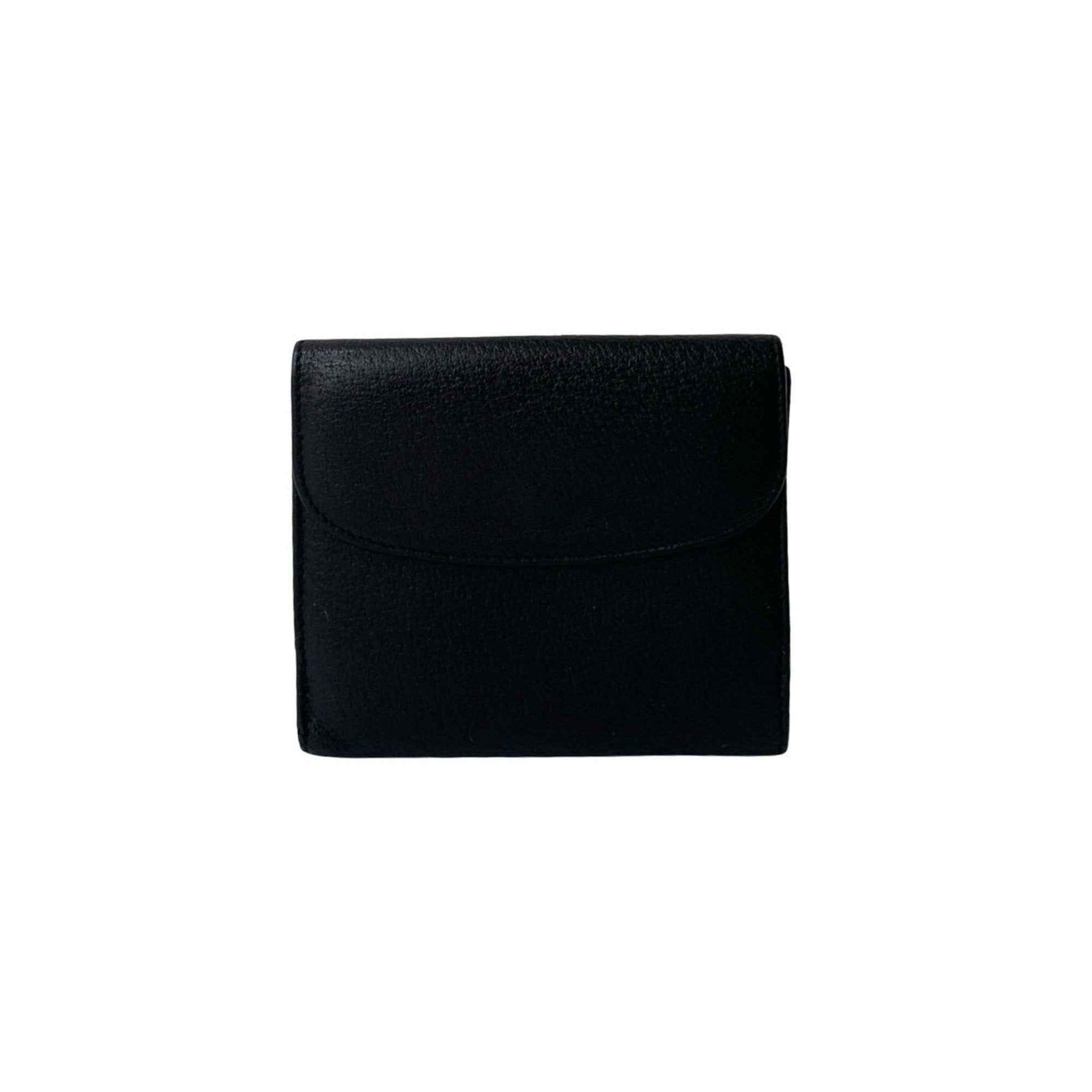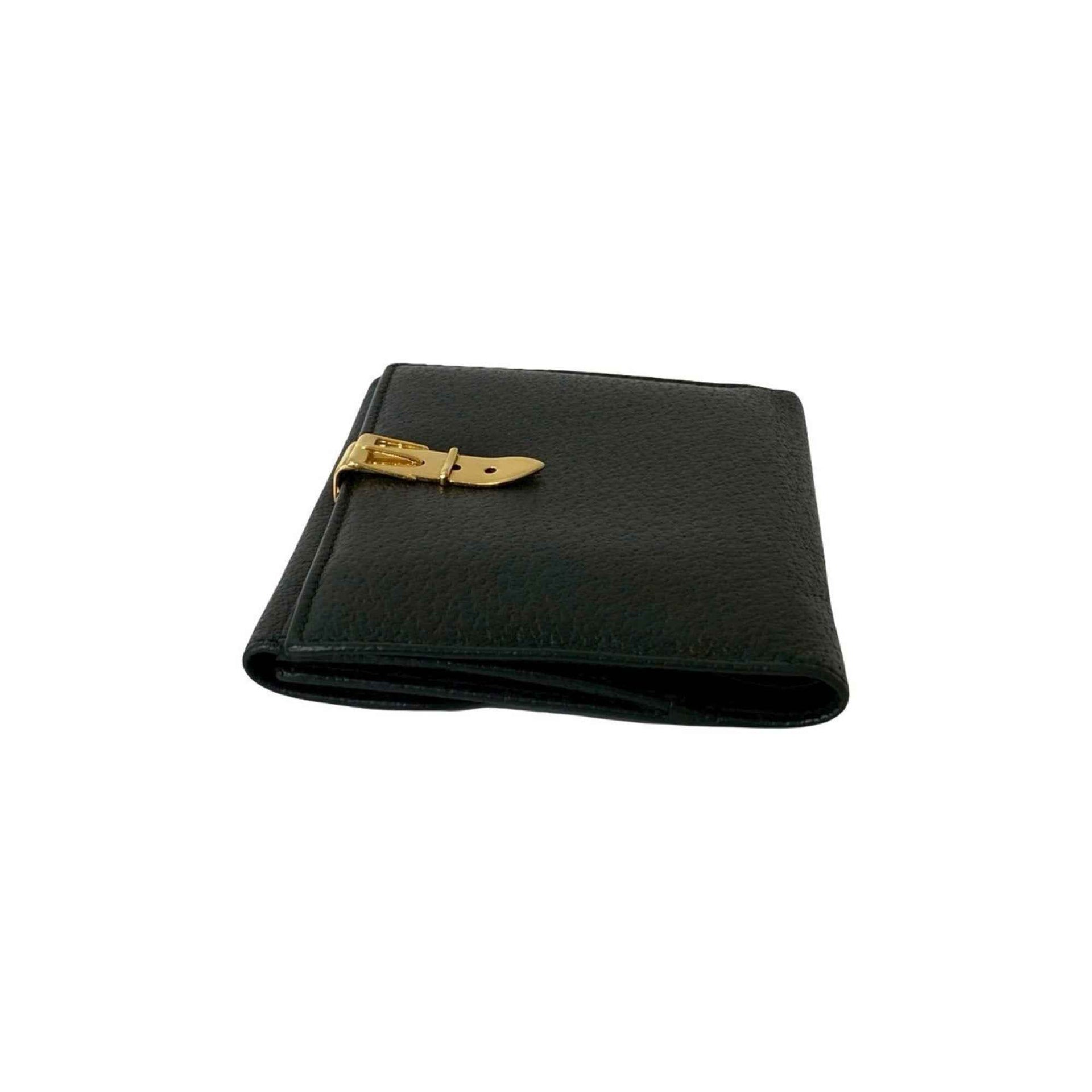 GUCCI Belt Motif with Metal Fittings, Genuine Leather Bifold Wallet, Mini Card Case, Coin Purse, Black, 46182