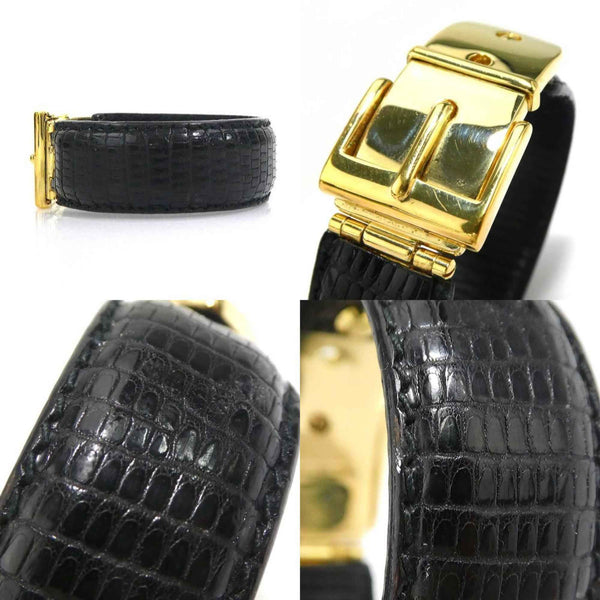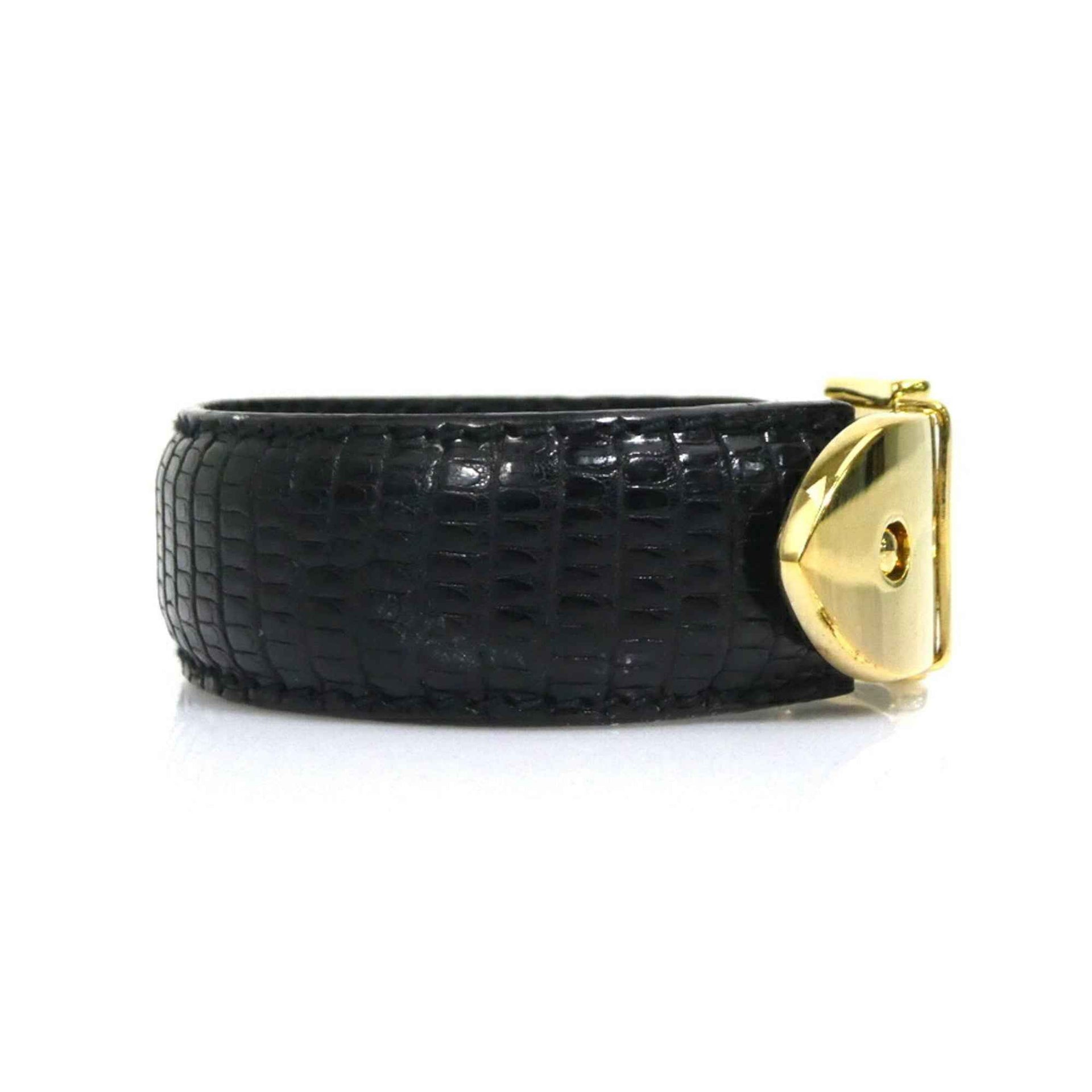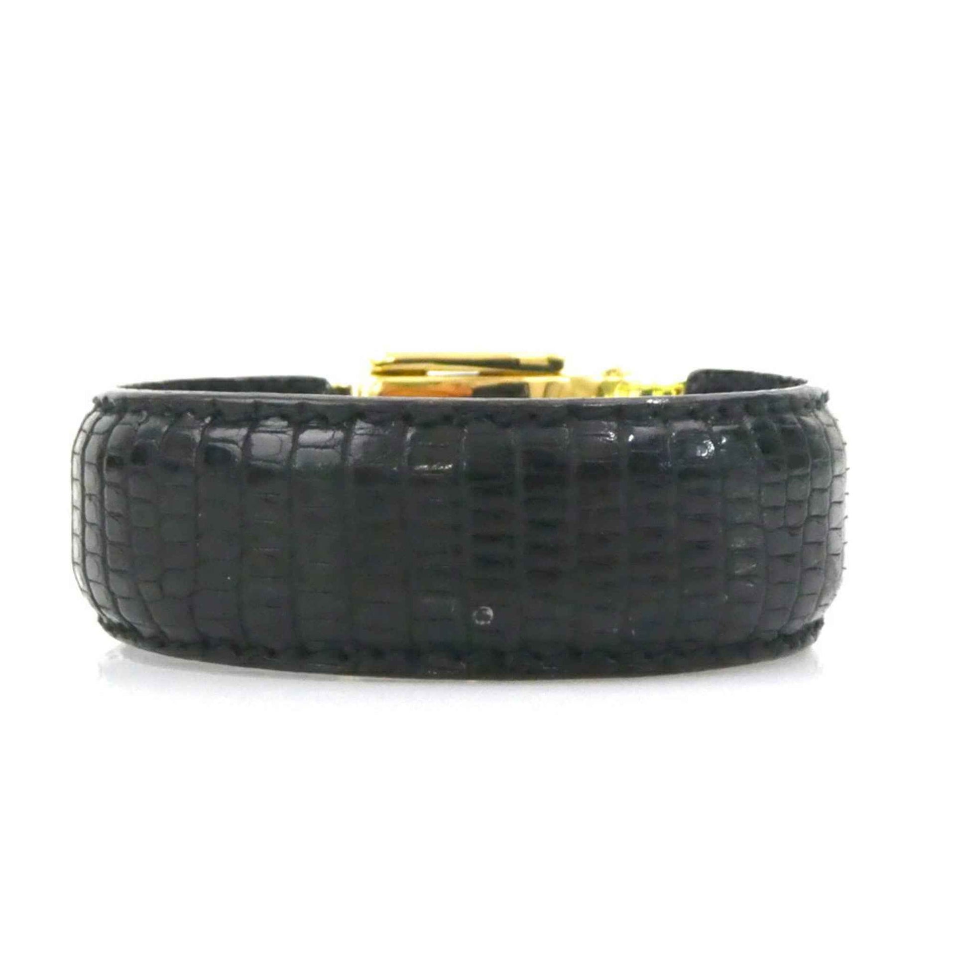 Gucci Bracelet Bangle in Leather/Metal, Black and Gold, Women\'s, 56503a
