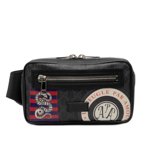 Gucci Courier Soft GG Supreme Body Bag, Belt Waist 474293, Black and Multicolor Leather, Men\'s