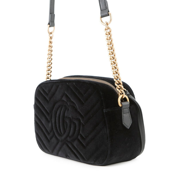 Gucci GG Marmont Bambi Velour Shoulder Bag 447632 GUCCI Black