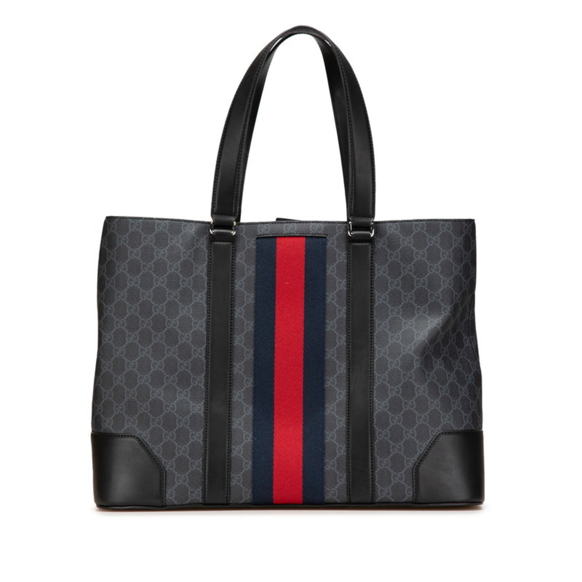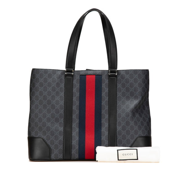 Gucci GG Supreme Sherry Line Tote Bag/Handbag 495560 Black Leather Women\'s GUCCI